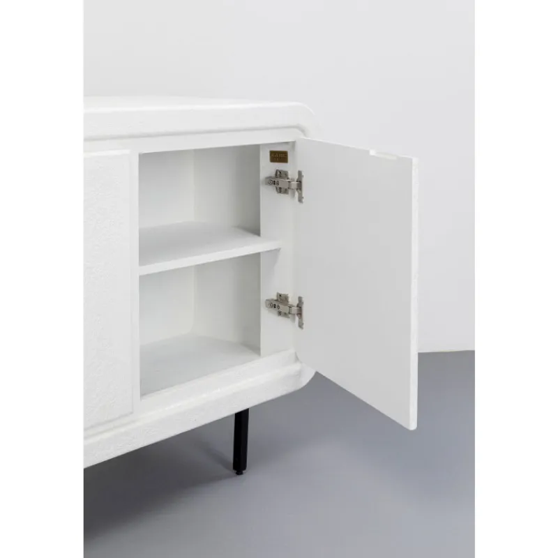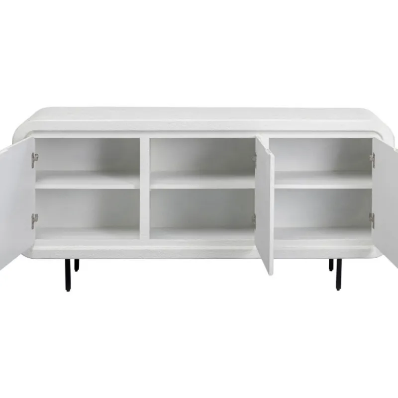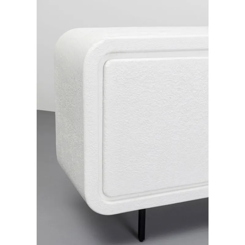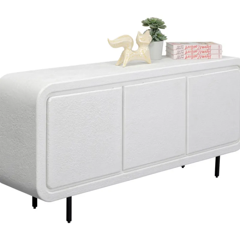 Este aparador aerodinâmico com um aspeto texturizado e cantos arredondados irá iluminar o seu interior graças à sua cor branca. Tem seis compartimentos de arrumação com fechos de fecho suave.