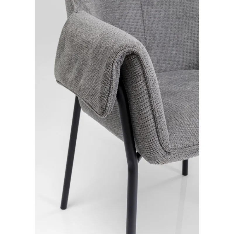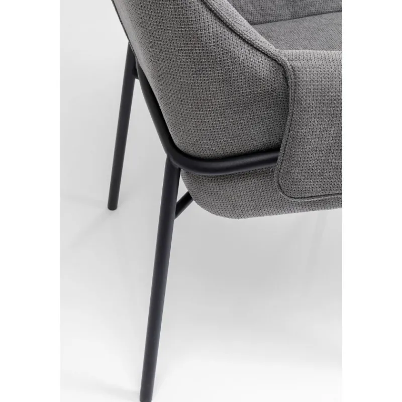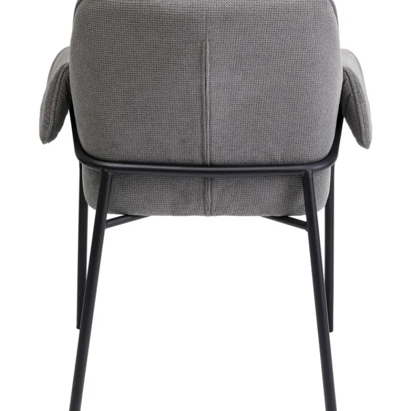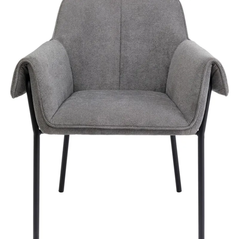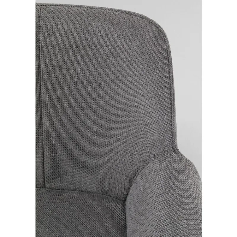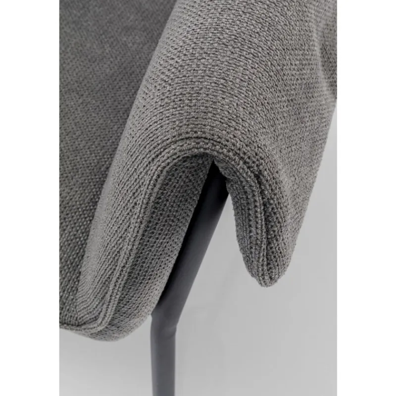 A cadeira Bess maravilhosamente confortável tem um aspeto intemporal e exala uma elegância interessante. Aqui pode sentar-se à mesa de jantar e desfrutar de uma refeição descontraída ou pentear o seu cabelo em frente ao espelho da vaidade. O tecido texturizado emocionalmente bonito e macio da poltrona estende-se sobre o assento e os encostos para que possa desfrutar do conforto sentado em qualquer posição. Poltrona cinzenta com pernas finas de metal em preto Acaricia-o com o seu tecido de estofo macio no estilo bouclé da moda. As cadeiras com apoios de braço são uma atualização confortável para a mesa de jantar ou área de estar. O conforto de assento fabuloso é fornecido pelo seu enchimento de espuma e altura do assento de 48 cm.
