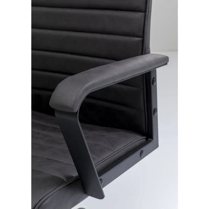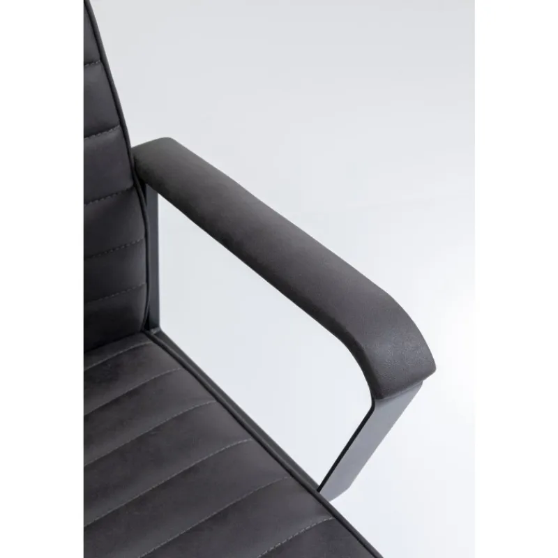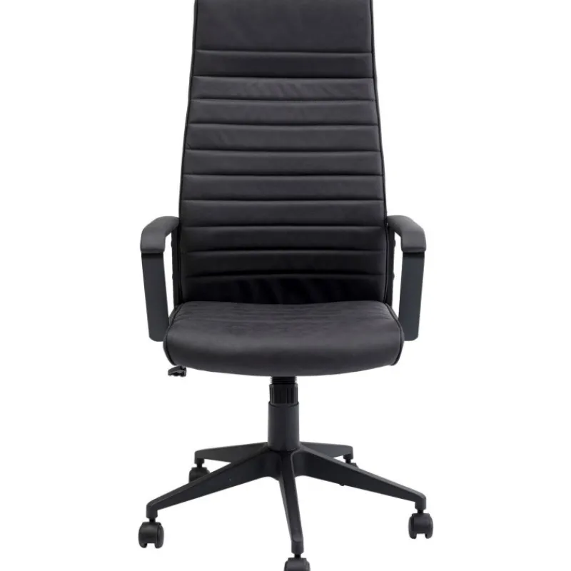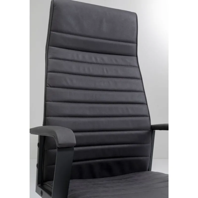 Cadeira preta e simples com uma elegante estrutura de madeira maciça e confortáveis estofos em pele. Particularmente confortável graças ao apoio de cabeça ergonómico, um encosto alto e apoios de braços macios. Perfeito também para um escritório em casa: o acolchoado suave de “cadeira de jogos” oferece o máximo conforto em todo o lado. Alta qualidade e estilo: o acolchoado elaborado faz da cadeira giratória de escritório um atractivo em qualquer escritório. Prática: a cobertura dos estofos no look de pele, tem um visual resistente e fácil de cuidar e pode ser limpa com um pano húmido.