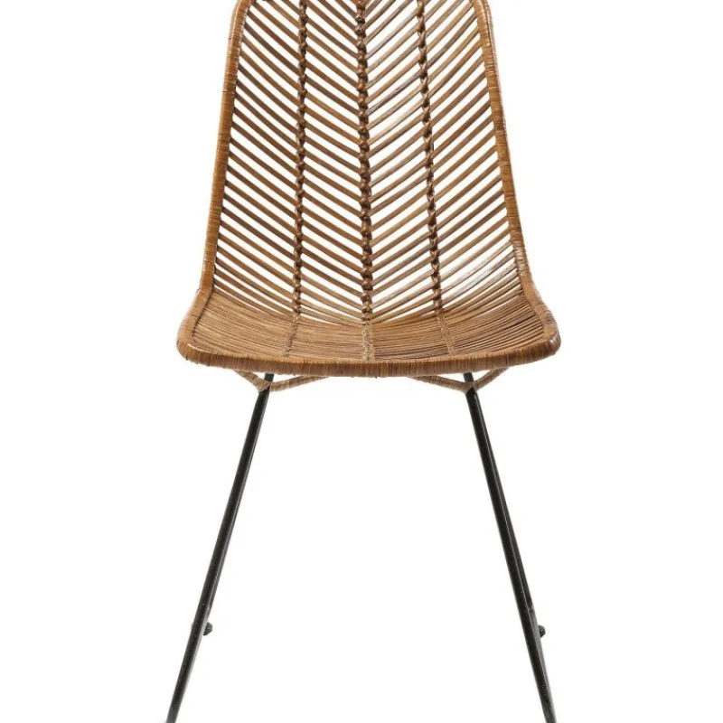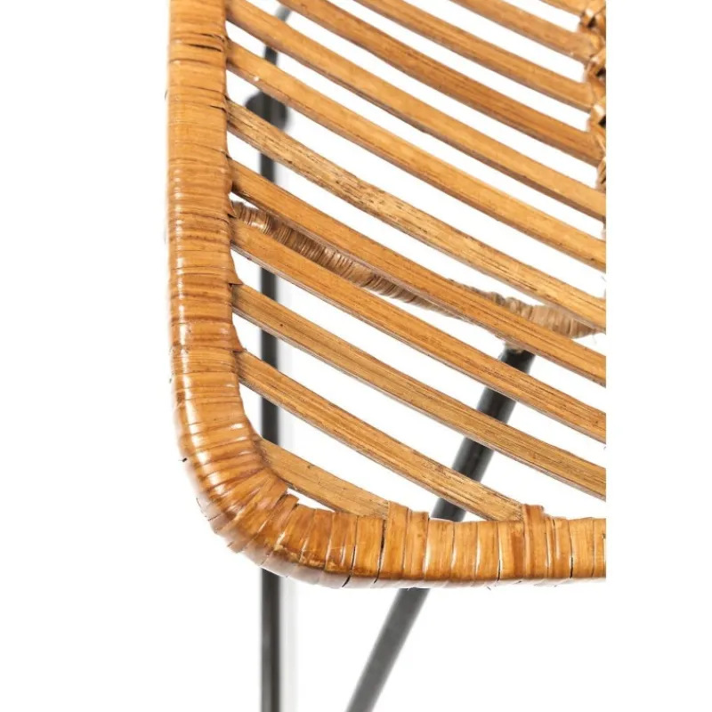 Esta bela e leve cadeira tem uma estrutura delicada em metal e um revestimento airoso em rattan natural. Traz a sensação de uma popular ilha de férias para casa. Disponível também noutras versões.