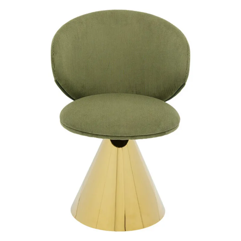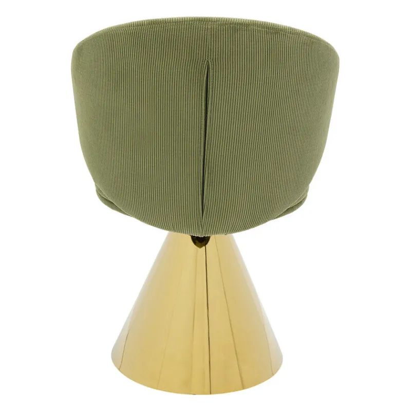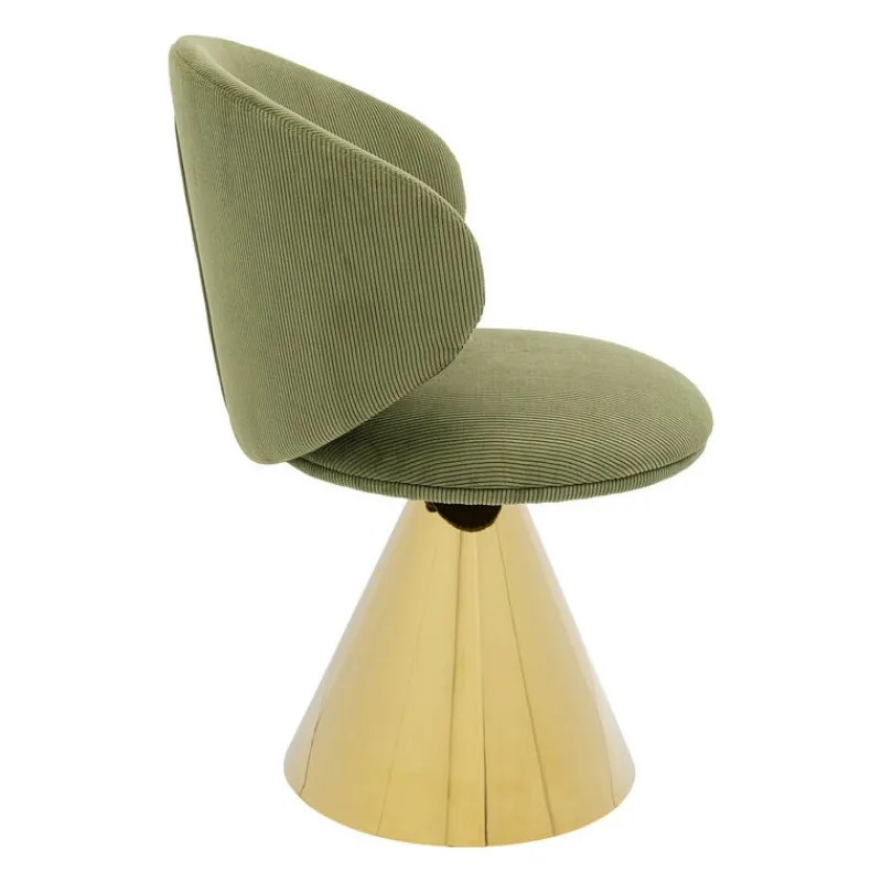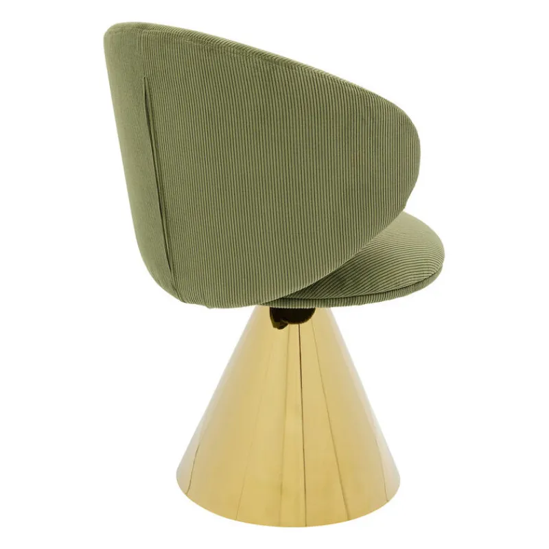 Esta cadeira é o exemplo da elegância retro, com o seu assento em bombazina verde e perna cónica dourada. Perfeita para dar um toque de cor e de glamour à sua sala.