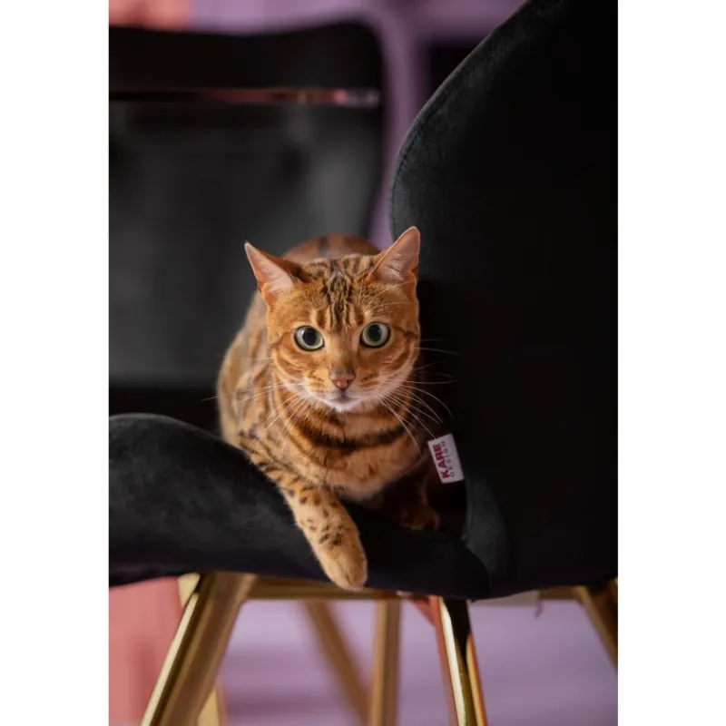 Vai adorar esta cadeira retro com o seu toque aveludado que trará elegância inegável ao seu interior. A sua base dourada destaca o assento curvo e o encosto salientado por linhas retas. Para mais harmonia, não hesite em combinar todos os modelos da mesma gama à volta da sua mesa: creme, rosa, verde e cinzento.