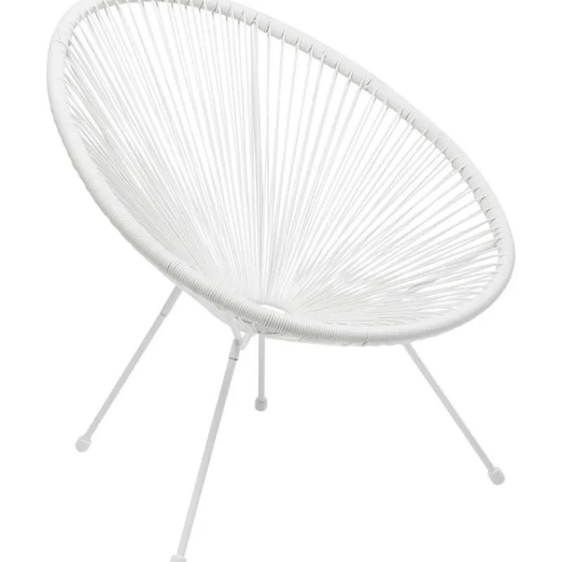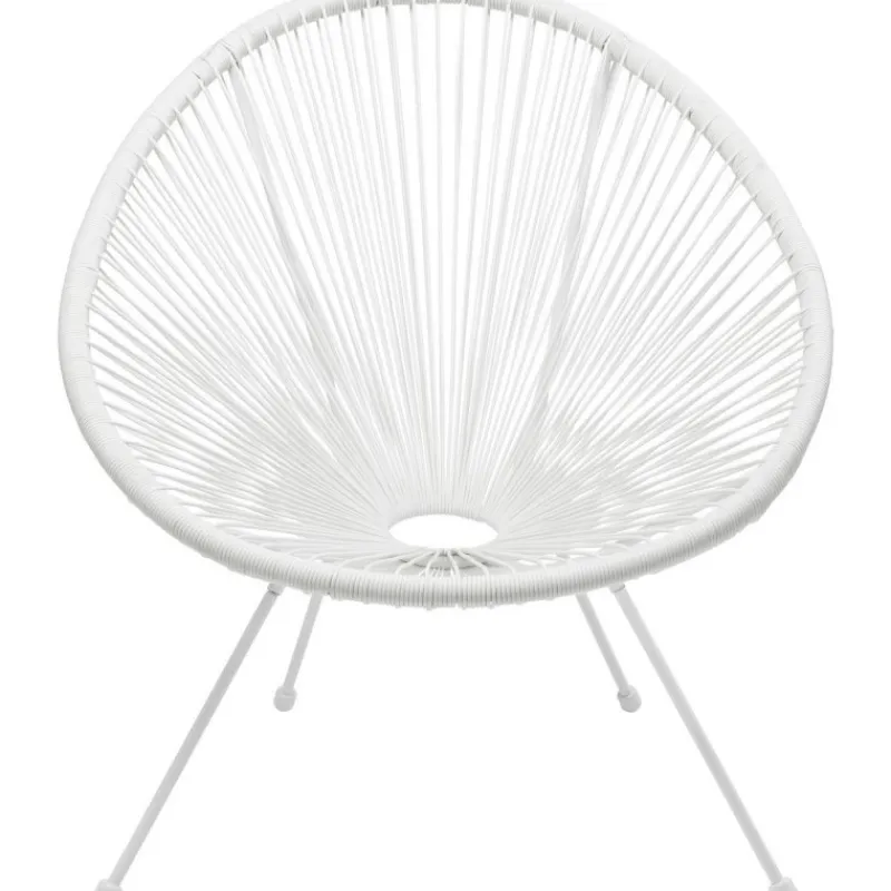 Cadeirão de design adequado para exteriores branco- ideal para o terraço, jardim e varanda. Cadeirão elegante, arejado e leve também para interiores. Segura graças às quatro pernas robustas. Design lendário dos anos 50 com um toque moderno e em cores modernas. O design Acapulco está disponível em muitos cores e como um banco de dois lugares.