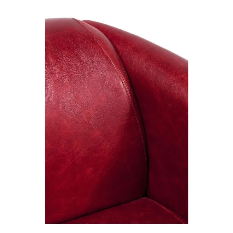 Clubby chic – Este cadeirão de design não convencional irradia personalidade e puro individualismo. A aviação poderia ter sido a inspiração para a sua forma aerodinâmica, com o encosto e os apoios de braços a fluir para trás. O resultado é um cadeirão com proporções finamente equilibradas que causa uma impressão intemporal e descontraída. Os seus estofos em pele vermelha de primeira qualidade completam o seu impacto de topo de gama. Uma peça de mobiliário para uma amizade durar toda a vida. Este cadeirão está disponível também em castanho e azul.