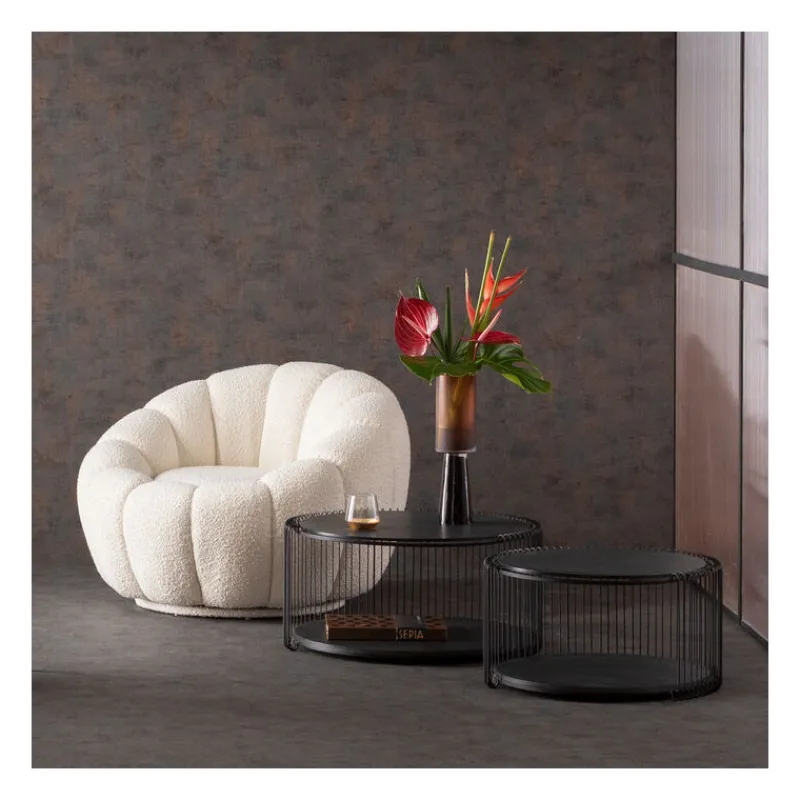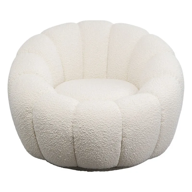 - Poltrona em forma de flor com tecido de estofamento bouclé