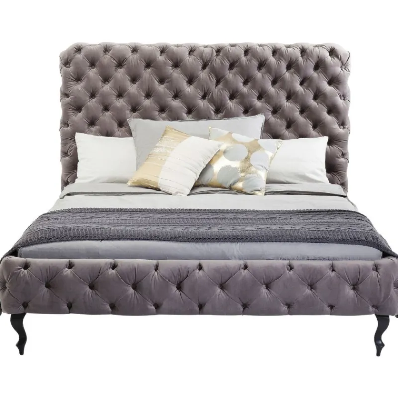 Uma luxuosa cama estofada da colecção Desire. Capa num fino veludo e discretamente brilhante. Totalmente estofada. Capitoné envolvente. Tem um visual elegante e realça cada quarto. Outros tamanhos disponíveis.