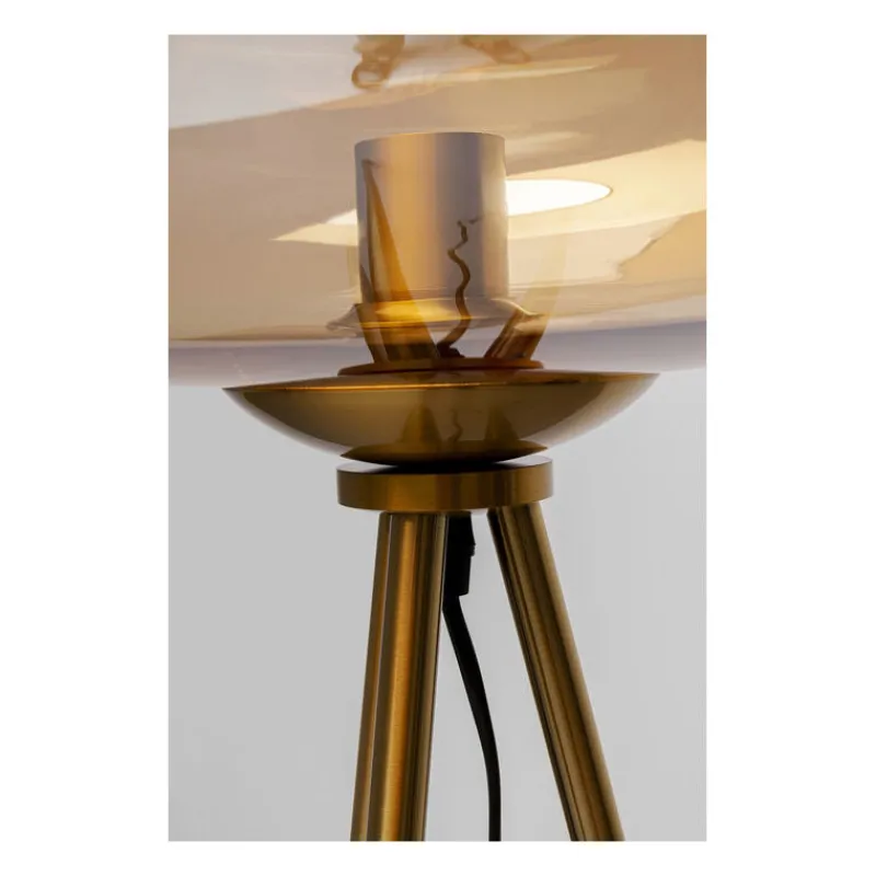 Ilumine o seu espaço com este candeeiro de pé retro. Possui três pés dourados e um abajur em vidro âmbar que difunde uma luz quente.