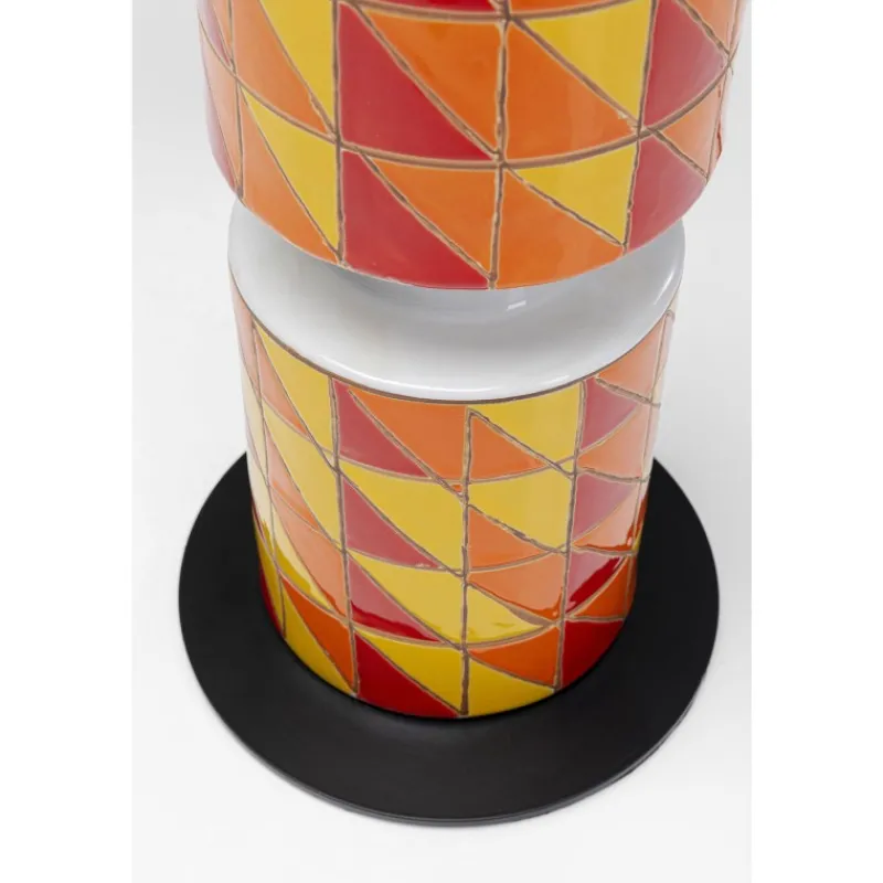 O estilo interior dos anos 70, também conhecido como década de 1970, era caracterizado por cores berrantes e padrões selvagens. Neste período, as lâmpadas eram uma parte importante do mobiliário e esperava-se que chamassem a atenção e fossem coloridas. O estilo foi caraterizado por formas lúdicas, materiais orgânicos e designs incomuns. Hoje, muitos destes candeeiros estão de volta à moda vintage e trazem o charme dos anos 70 de volta às casas modernas. 230 V, 50/60 Hz, casquilho E27, número de iluminantes 1, máx. 40 watts, sem iluminante. Candeeiro de pé feito de cerâmica em laranja e amarelo, 138,1 x 33 x 33 cm (A/L/P). Estilo dos anos setenta em cores e padrões alegres – este candeeiro é garantido como destaque na sala de estar. Este candeeiro standard vai com certeza dar um toque especial ao estilo de mobiliário moderno e revelar a sua faceta de verdadeiro fã do design. Ficha E27, número de lâmpadas 1, máx. 40 W, lâmpada não incluída.