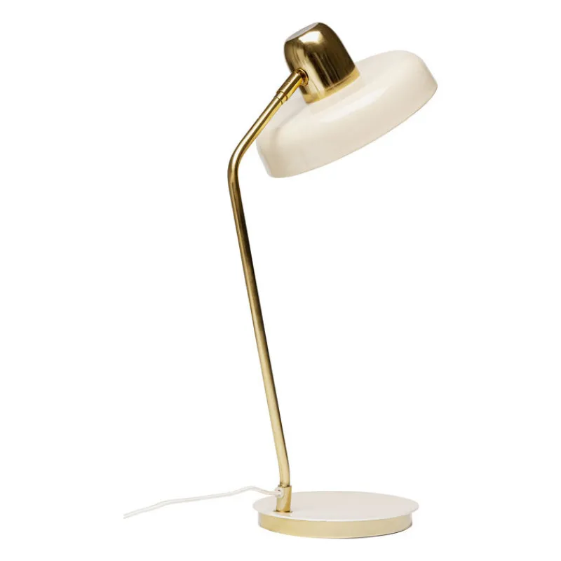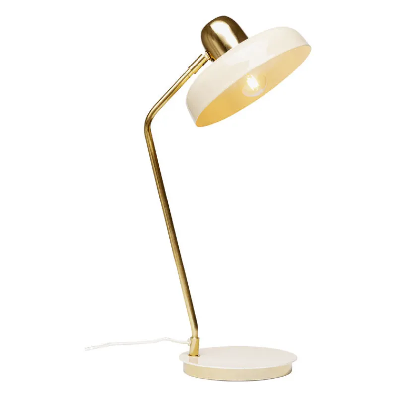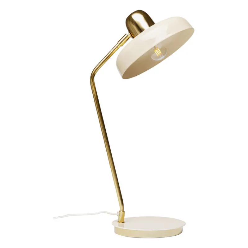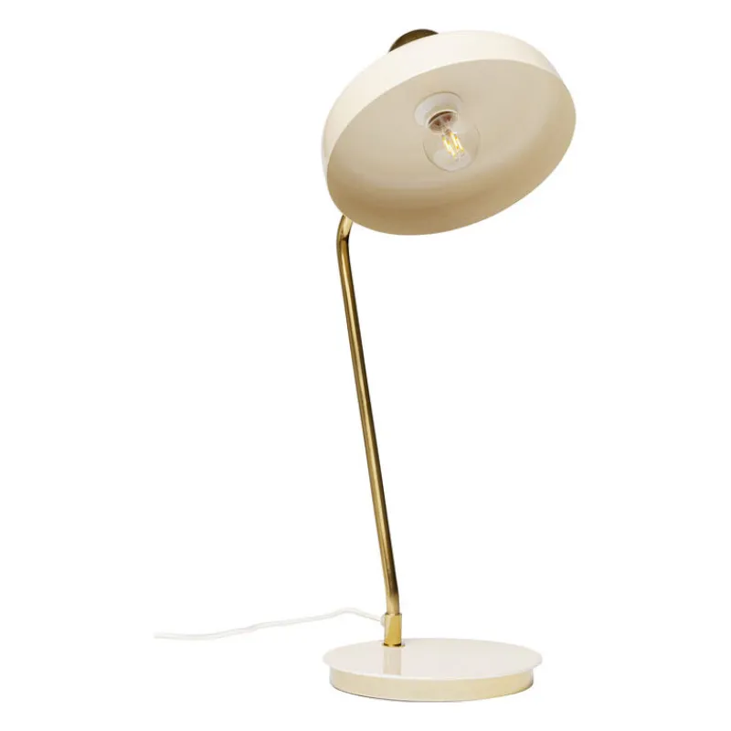 Este candeeiro de mesa bege de estilo retro faz lembrar os candeeiros de secretária clássicos de outrora. A sua cor viva e o seu design nostálgico dão-lhe um toque de diversão.