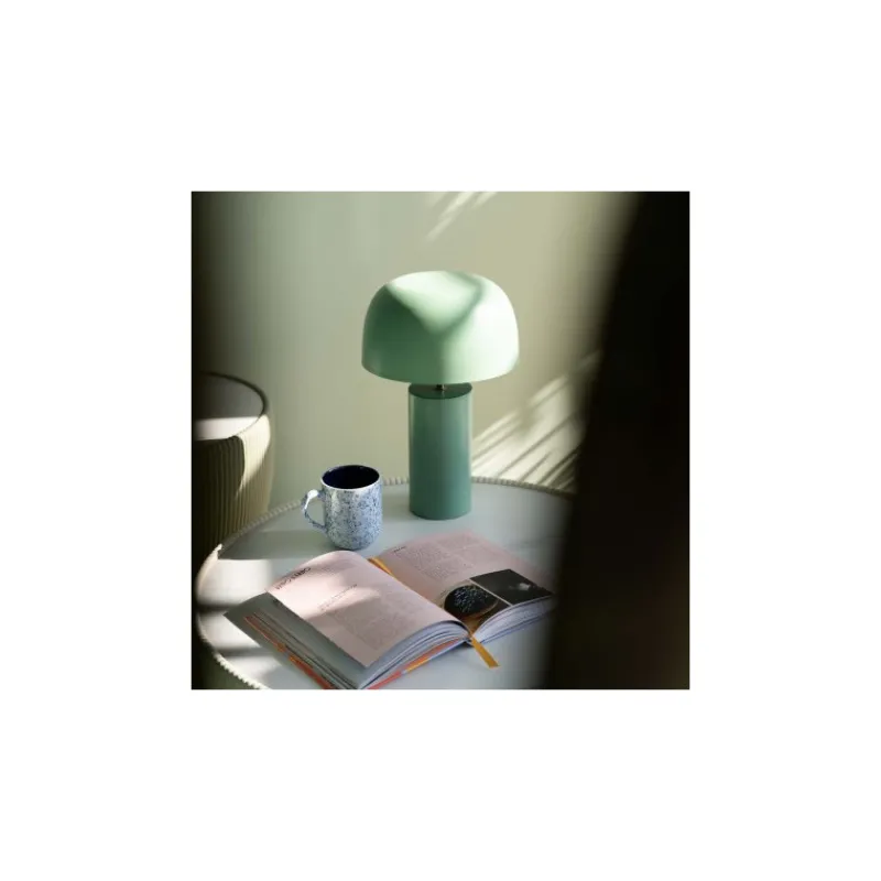 Este candeeiro integra-se discretamente em qualquer interior graças ao seu abajur em forma de cúpula montado numa base cilíndrica. O seu design minimalista combina com qualquer interior moderno e organizado.