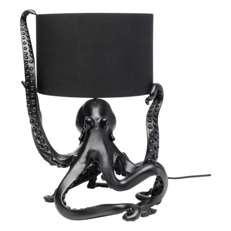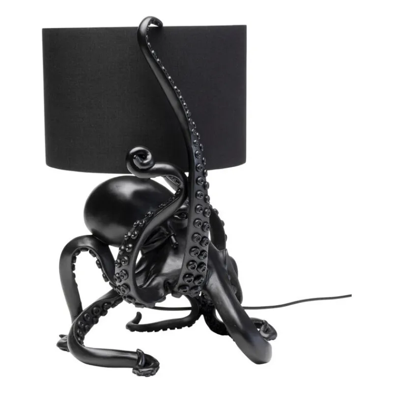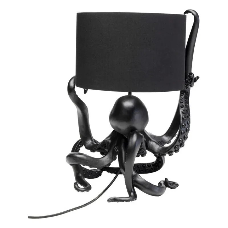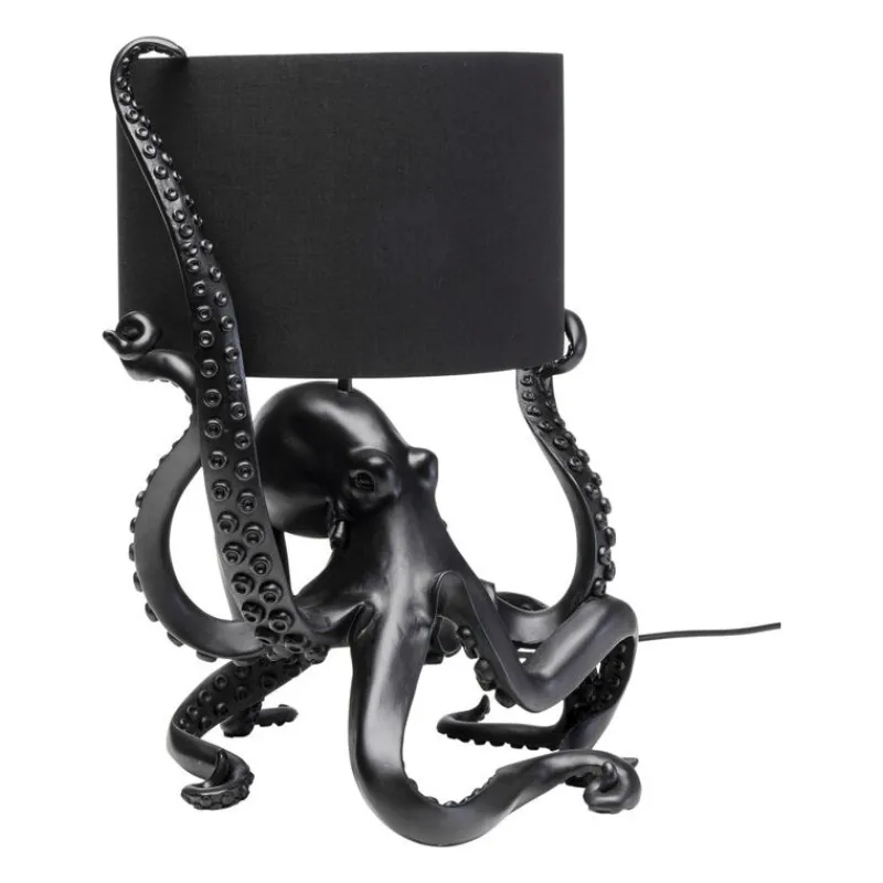 Este polvo em poliresina equilibra um abajur entre os seus tentáculos. Com o seu aspeto totalmente preto, este candeeiro dará uma atmosfera misteriosa à sua casa.