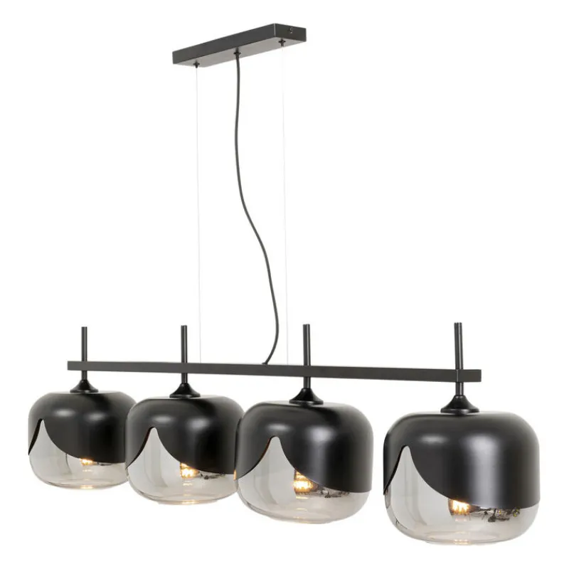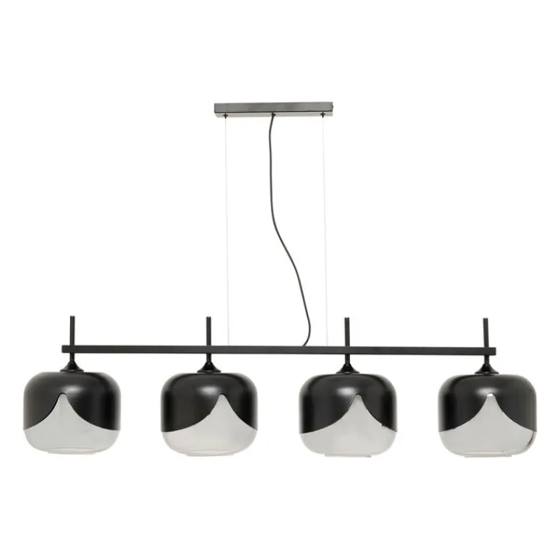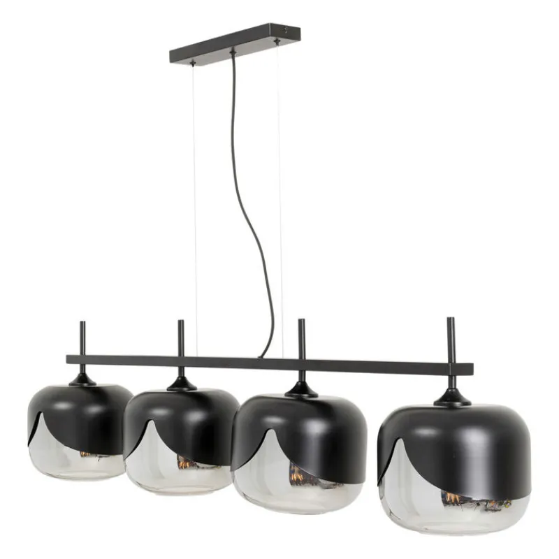 Este candeeiro de suspensão tem um estilo moderno com os seus 4 globos redondos de vidro colorido. Ficará ótimo por cima de uma mesa em qualquer sala de estar. Também disponível como candeeiro de pé, candeeiro de mesa ou versão de globo único.