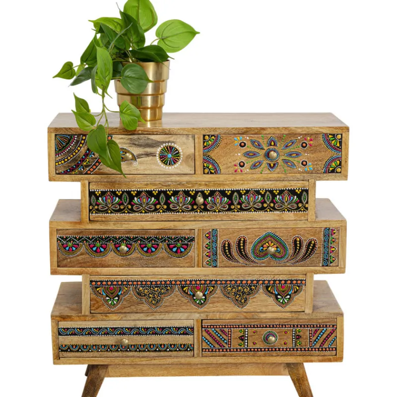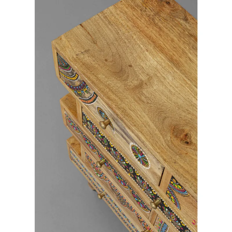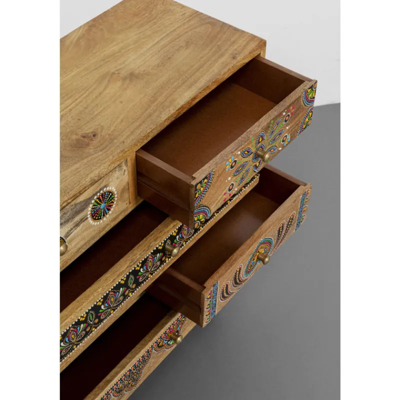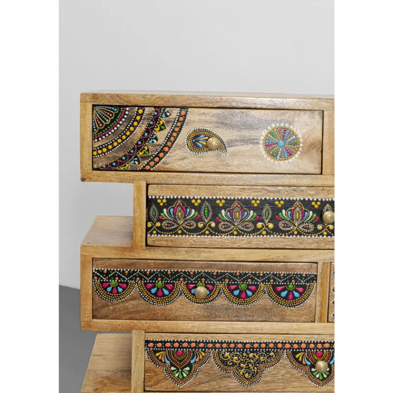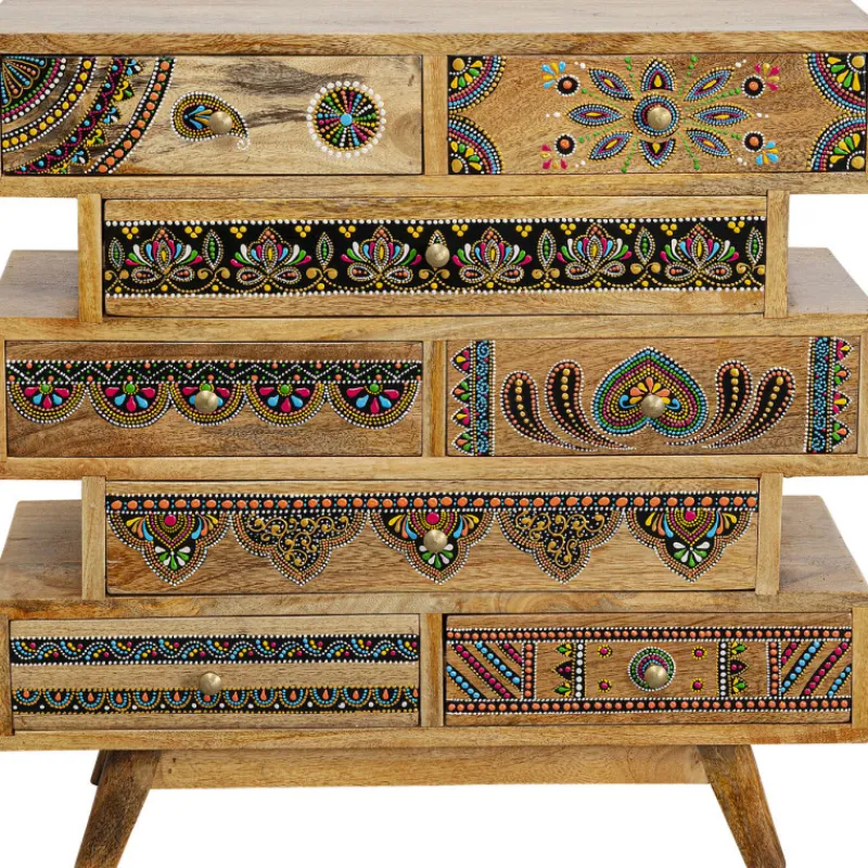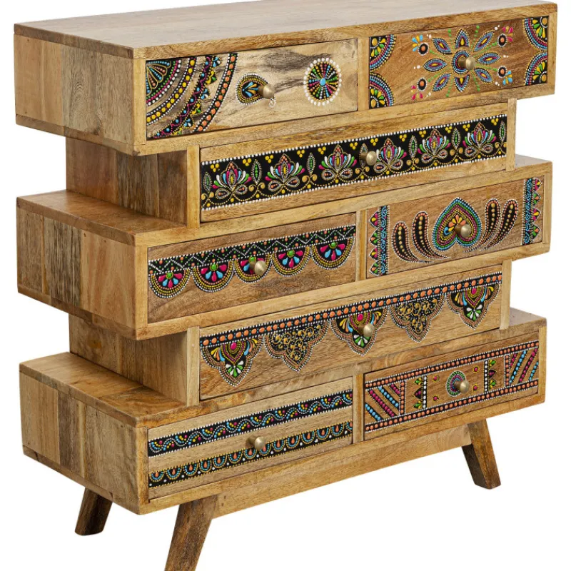 Esta cómoda de estilo étnico vai alegrar a sua casa com os seus motivos coloridos. A disposição escalonada das gavetas torna-a ainda mais invulgar.