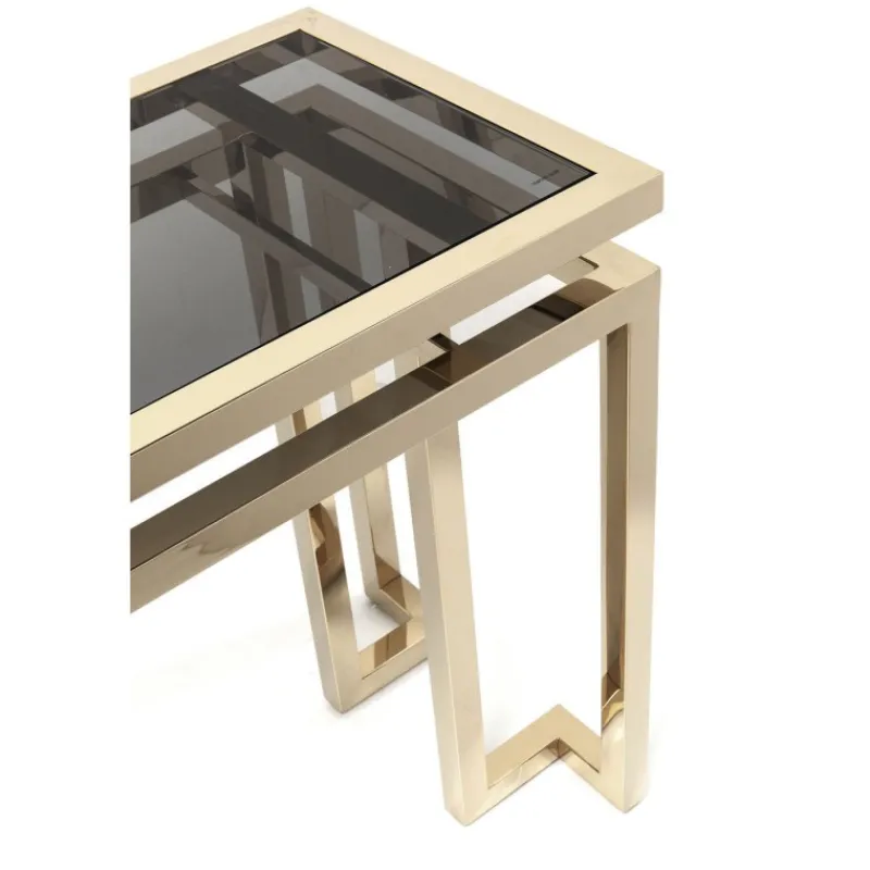 Luxo e sofisticação. Um pouco de glamour nunca fez mal a ninguém. Esta consola poderia ser também uma escultura moderna de mobiliário num museu. Causa impacto com o seu requinte criativo e toque elegante, ligeiramente excêntrico. A consola é perfeitamente adequada para um interior glamoroso e eclético, e proporciona um atractivo toque de Hollywood. Isto realça a qualidade de estrela do seu mobiliário. Outras versões disponíveis.