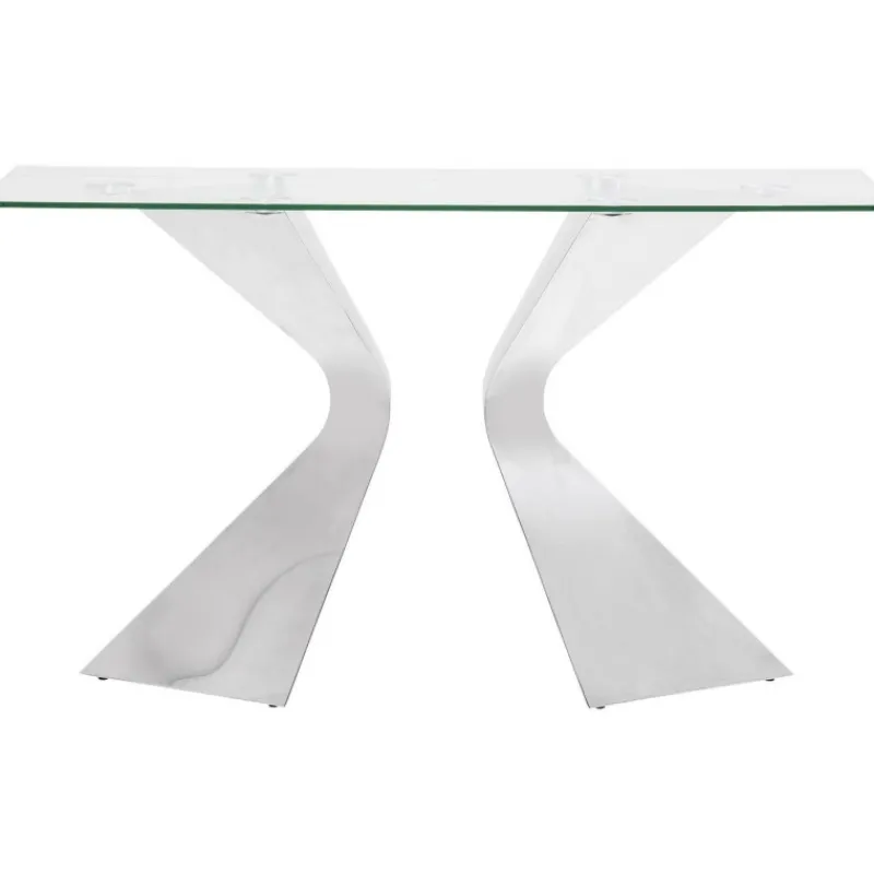 Luxo e sofisticação. Um pouco de glamour nunca faz mal a ninguém. Esta consola poderia também ser uma escultura moderna de mobiliário num museu. Causa impacto com o seu requinte criativo e toque elegante, ligeiramente excêntrico. O tampo da consola é sustentado por duas pernas em forma artística cromadas. A mesa é perfeitamente adequada para um interior glamoroso e eclético, e proporciona um toque de Hollywood. Isto realça a qualidade de estrela do seu mobiliário. Outras versões disponíveis.