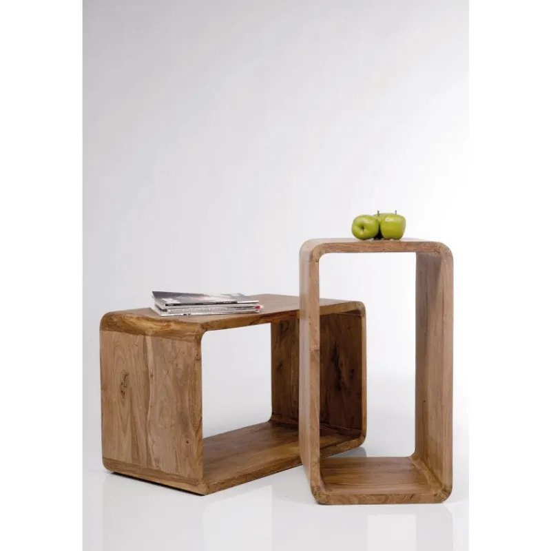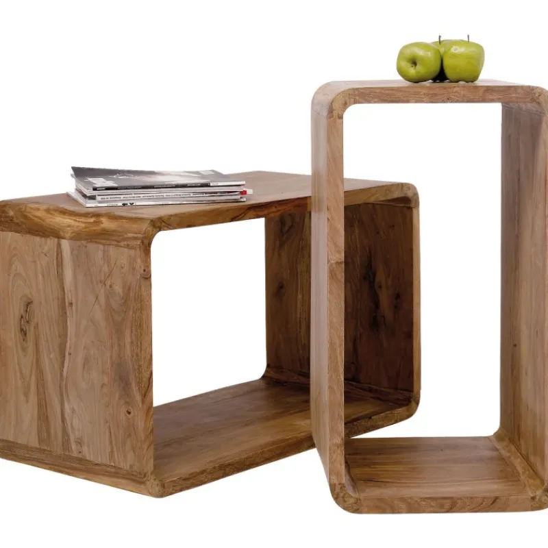 O design funcional lounge vem aos pares – Estes dois cubos formam uma verdadeira equipa de sonho. Entre outras opções, eles podem ser empilhados para formar uma estante, ou colocados lado a lado como uma mesa. As possibilidades de design são muitas e variadas. Mas é claro que não têm de trabalhar em conjunto. Cada um pode causar impacto por si só, por exemplo como uma mesa de café ou mesa lateral. Tamanho: 48x80x40, 39x70x40cm. Formas de design num estilo lounge combinadas com materiais naturais. Maravilhoso de se ver. A colecção Authentico distingue-se por um toque de modernidade rodeado pela forte aura da madeira maciça e pela clara linguagem formal. Disponível uma vasta gama de outros artigos.