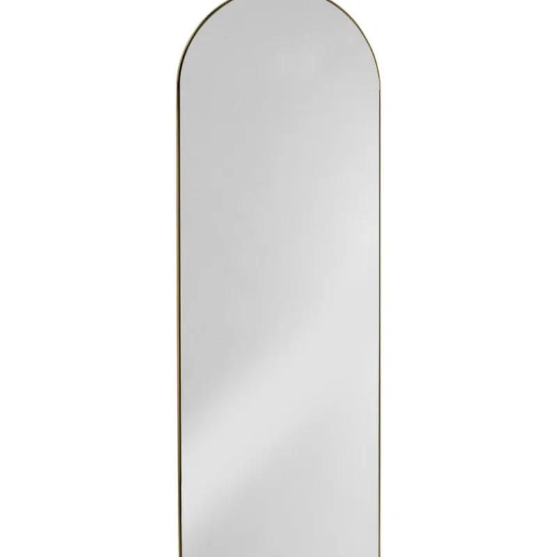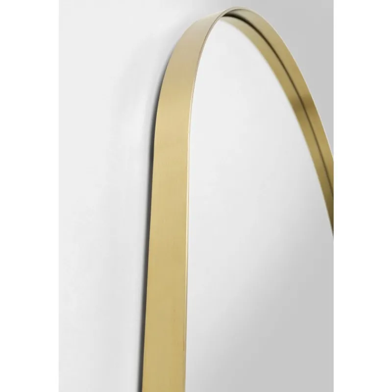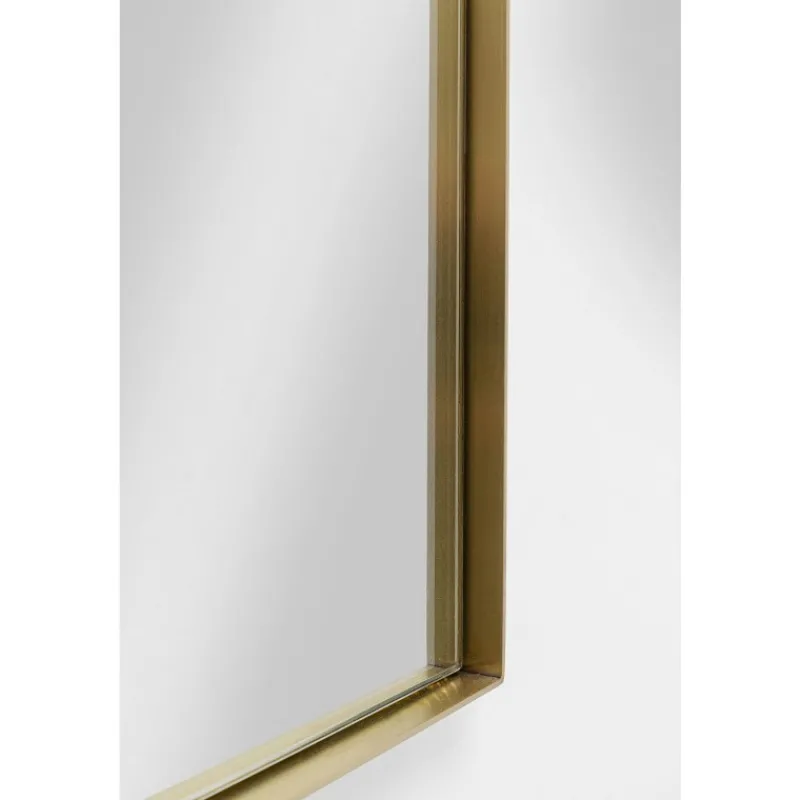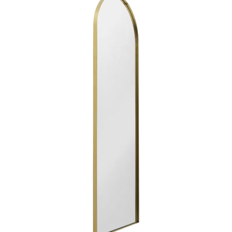 Está orgulhoso do seu interior? Então pode duplicar o seu entusiasmo em relação à sua casa com um espelho de parede. Os espelhos trazem mais luz para quartos, corredores ou salas de estar e expandem visualmente os seus espaços. Graças à sua forma especial, este espelho age como uma janela para um quarto adicional que reflete o seu bom gosto. Dica: o espelho não só pode ser montado na parede, mas também encostado à mesma. Se decidir usar esta opção, vale a pena pensar na proteção antiderrapante. Espelho dourado para a parede feito de metal e com acabamento em latão. Destaca-se de outros espelhos com a sua forma incomum. Grande o suficiente como um espelho de corredor para verificar a sua roupa. Capta a luz do dia em janelas opostas e também a irradia para cantos escuros. Pode ser encostado contra a parede ou pendurado pelos ganchos de metal na parte de trás.