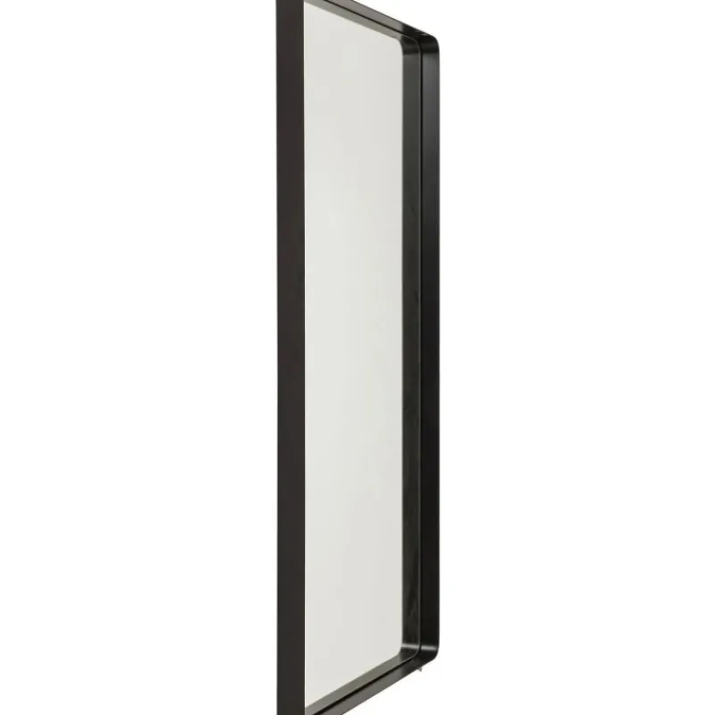 Um espelho de parede elegante com silhueta retraída e cantos arredondados suaves. Tem um aspecto intemporal e excFixaç…