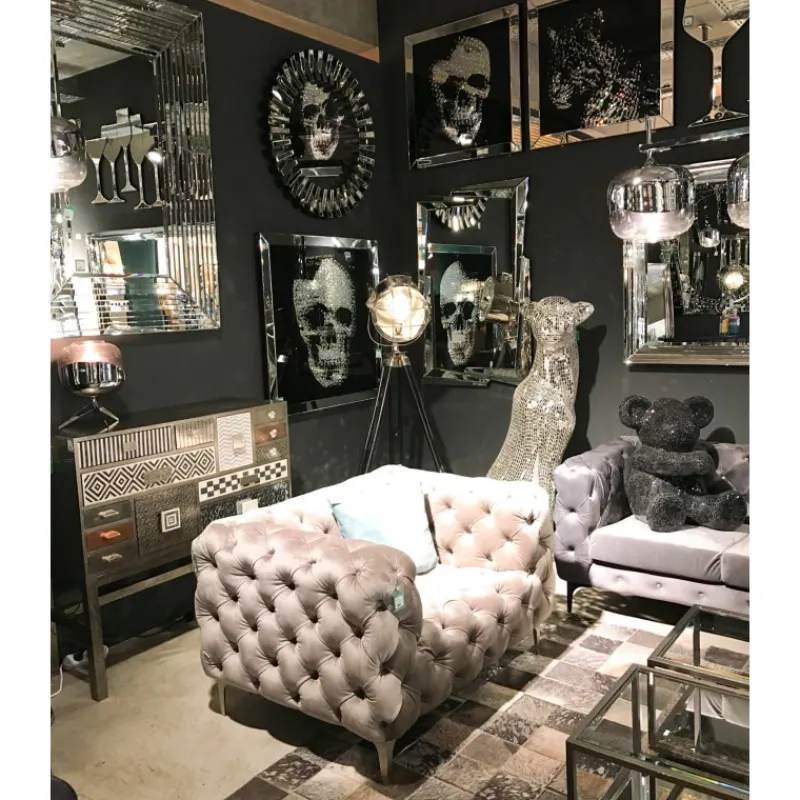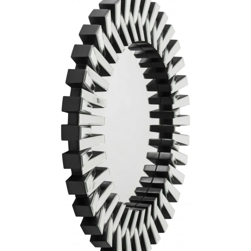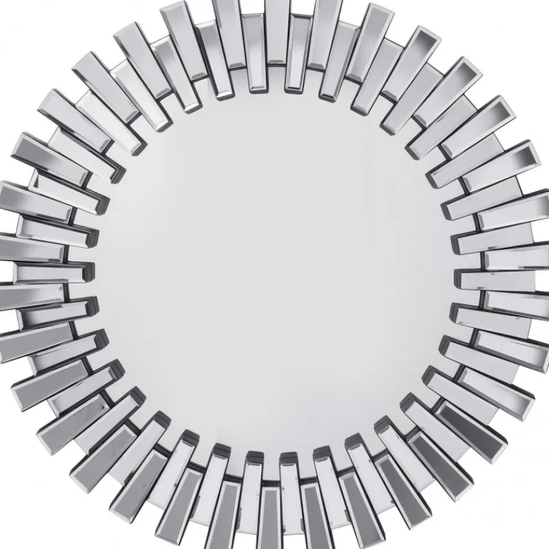 Este espelho redondo não só é útil, como também é altamente decorativo. Os raios em vidro da moldura dão-lhe infinitude e combinam com os estilos moderno e clássico.