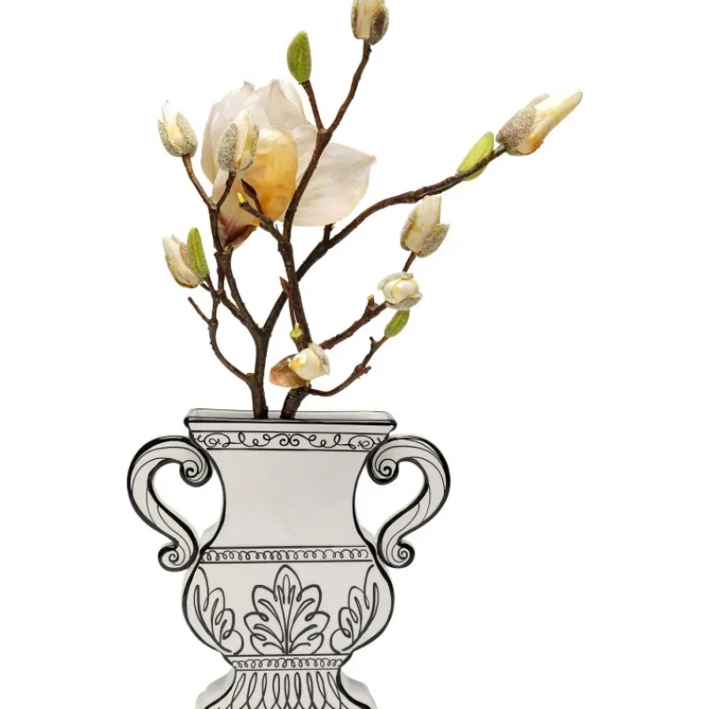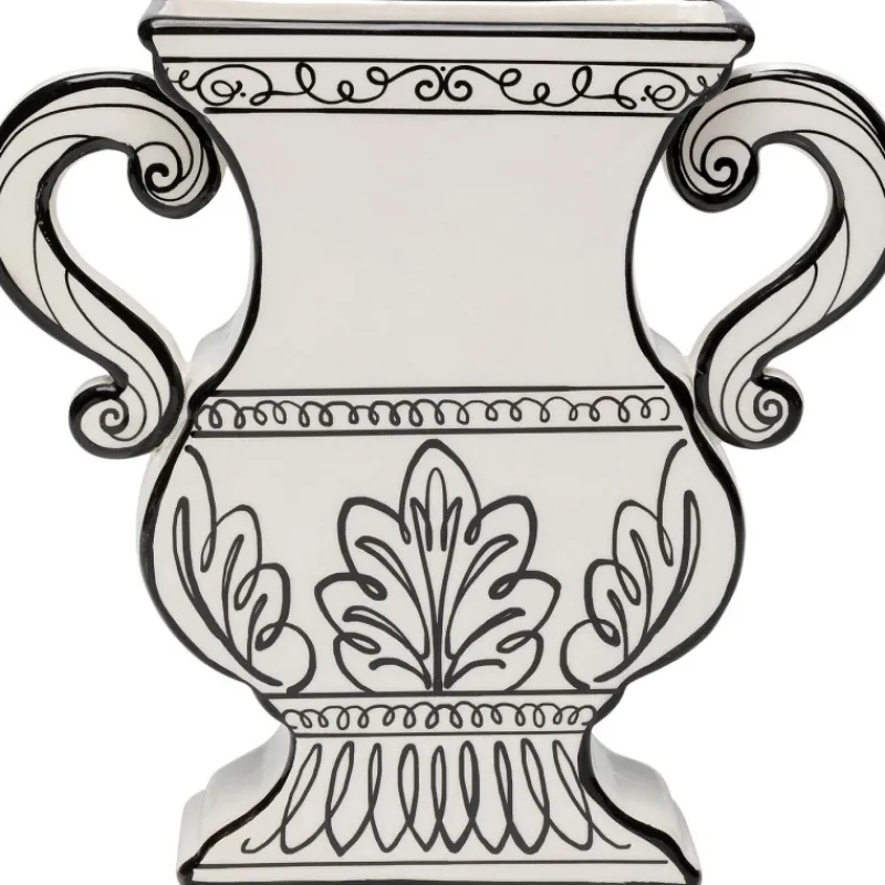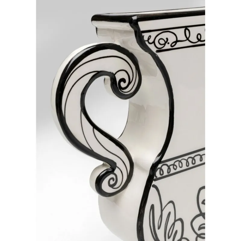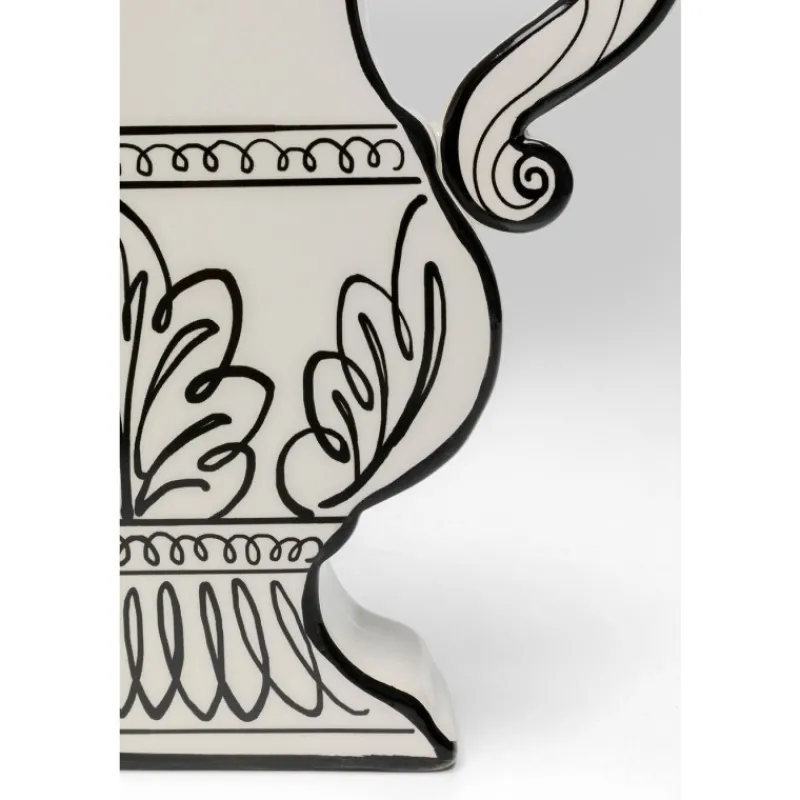 A jarra branca Favola não é apenas um excelente complemento para o seu interior, mas também um objeto funcional. É ideal para flores frescas, ramos ou outros arranjos decorativos e pode ser colocado em qualquer mesa, prateleira ou peitoril da janela. Com o seu design único e linhas pretas pintadas à mão, vai atrair todos os olhares e dar um toque especial à sua casa. Jarra preta e branca em cerâmica vidrada, 23,5 x 23 x 5,2 cm (A/L/P). Fabricada parcialmente à mão. Uma jarra de flores elegante em forma de ânfora. Decoração extravagante para a sala de estar e outros ambientes.