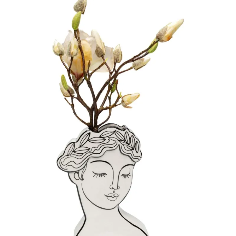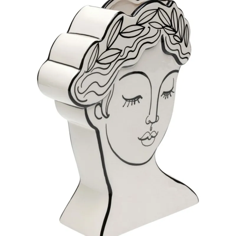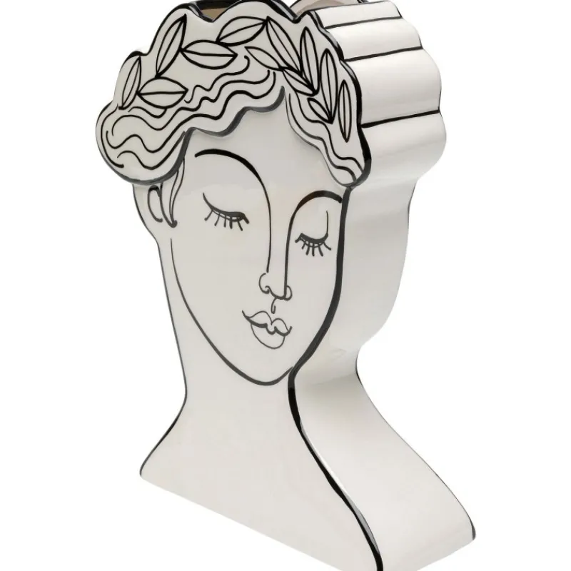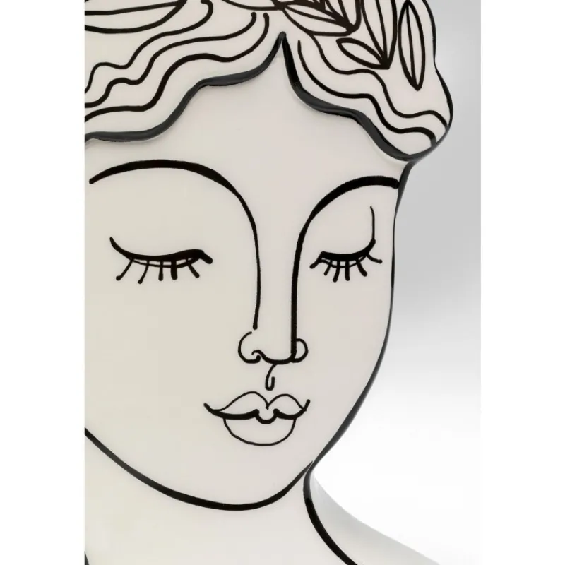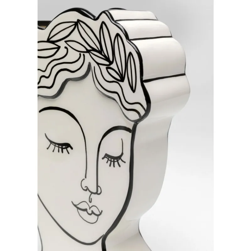 Favola Lady não é apenas uma jarra branca, mas uma pequena obra de arte. Como um acessório doméstico original, é um atrativo que dará à sua casa algo extra. Pode ser usada com ou sem flores e será um destaque absoluto em qualquer mesa, aparador ou prateleira. A jarra Favola Lady é um imprescindível para todos os que desejam melhorar a sua casa com acessórios incomuns e elegantes. Jarra de cerâmica preta e branca, 25,5 x 20,8 x 7,4 cm (A/L/P). Parcialmente trabalhada à mão. Uma jarra de flores na forma de um rosto. Decoração elegante para a sala de estar e em todos os outros lugares.