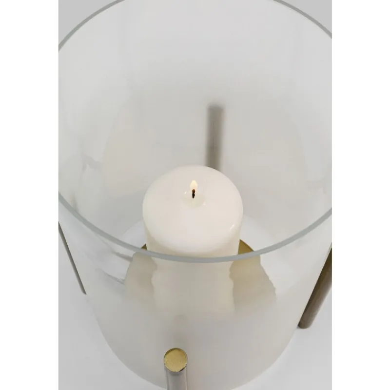 Lamparinas modernas feitas de vidro podem ser integradas na decoração da sua casa durante todo o ano. Este modelo minimalista em branco brilha tão lindamente entre as decorações de Natal de inverno como nas noites amenas de verão na varanda. O que torna esta lamparina de mesa especial é o cilindro de vidro, que tem um acabamento acetinado refinado com uma cor ligeiramente branca e leitosa. A proteção contra brisas dá à chama da vela um ambiente particularmente atmosférico. Lamparina de mesa de vidro com moldura metálica em dourado, 25 x 19 x 19 cm (A/L/P) O vidro semi-transparente com o seu acabamento acetinado faz a luz da vela brilhar misteriosamente A forma cilíndrica simples torna esta lamparina moderna um objeto decorativo intemporalmente bonito para cada estação Feita artesanalmente, única e feita para velas largas Uma ideia de presente elegante para todas as ocasiões, idealmente incluindo uma vela correspondente