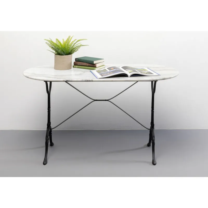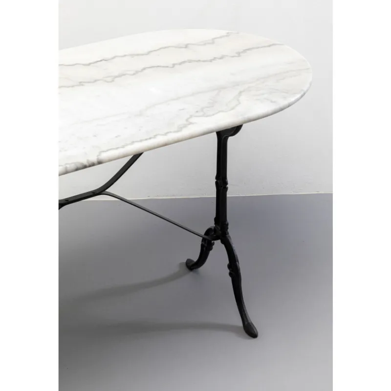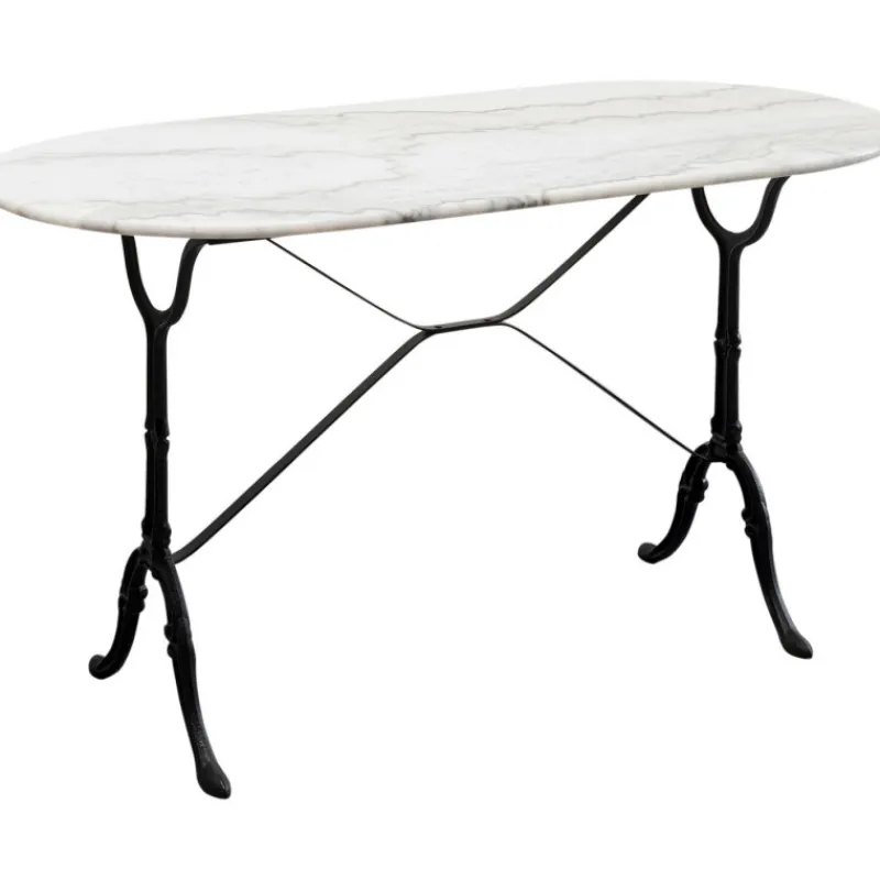 Com as suas pernas de aço e tampo de mármore, esta mesa de bistrô é típica dos terraços parisienses. Desfrute de um bom café ou pequeno-almoço na sua sala de estar ou na sua varanda. Dará um toque de elegância e de charme à sua mesa.