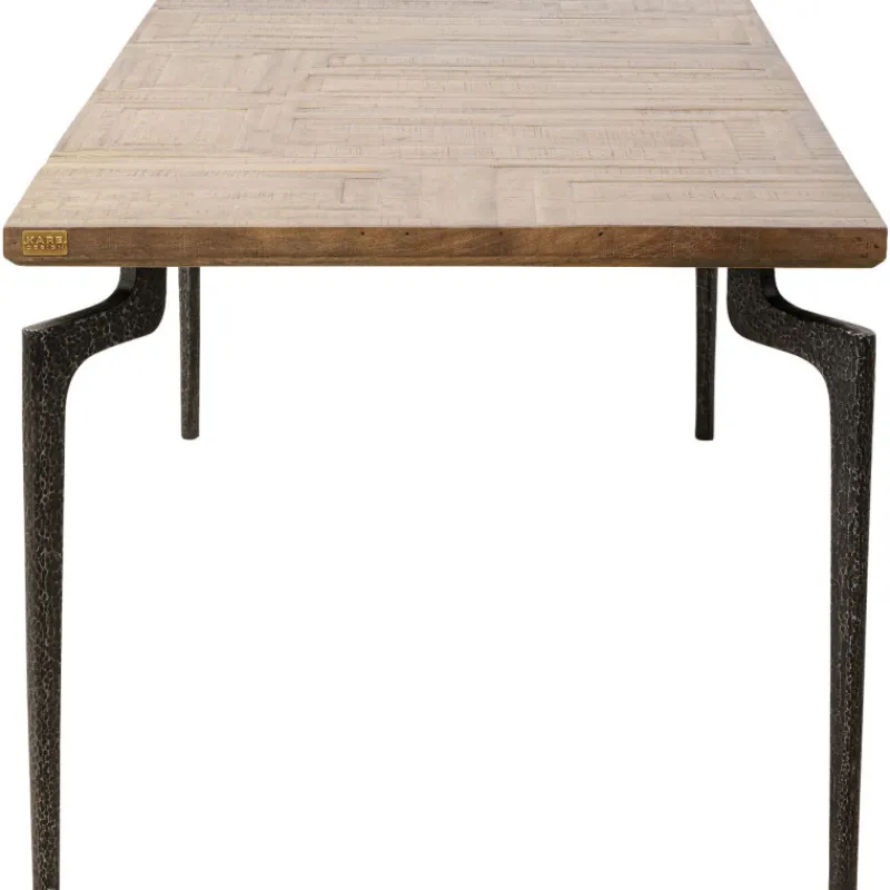 Esta mesa de jantar irá encantá-lo com o seu tampo em madeira maciça e pernas em aço martelado que lhe conferem um carácter cru.