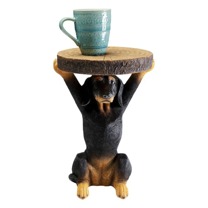 Dê um toque de fantasia à sua casa com esta mesa de apoio única e peculiar. Feito de poliresina, este dachshund preto fará as delícias de miúdos e graúdos. Tem o tamanho certo para caber em qualquer lugar da sua casa: com uma altura de 52 cm e um tampo de 32 cm de diâmetro, é ideal como mesa de cabeceira ou mesa de apoio.