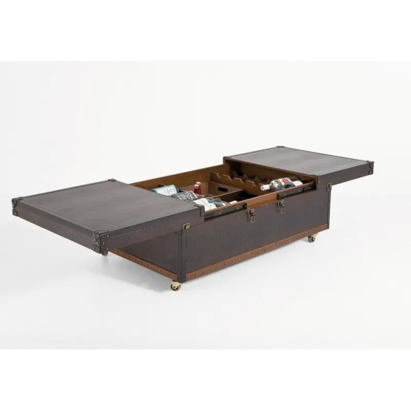 Uma mesa de centro de design atraente com um interior interessante – A nossa mesa Bar Colonial oferece mais do que se pode imaginar: tesouros de todos os tipos podem ser guardados no seu espaçoso interior. Por outras palavras, tudo o que precisa para uma noite agradável. Com espaço para 12 garrafas (deitadas), espaço de arrumação adicional e uma bandeja amovível. Atraente, sofisticada e prática – a mesa de centro Bar Colonial é a verdadeira favorita no género do baú, com muitos detalhes e um óptimo interior. Dimensões quando ampliada: 200. Disponíveis também outras versões.