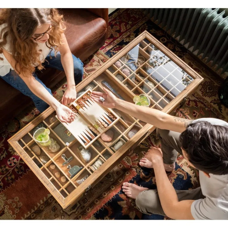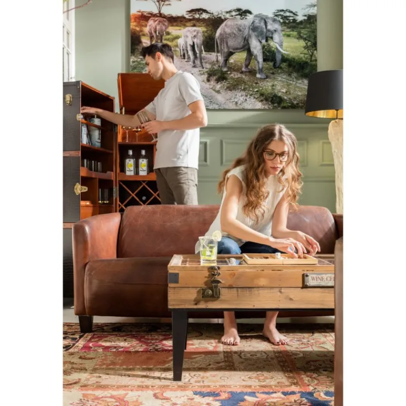 Uma maravilhosa vitrine antiga com pernas. A mesa Collector é óptima tanto para acomodar pequenos tesouros como para os apresentar com estilo. Mas o melhor é que existe um compartimento secreto em baixo – para os seus vinhos preferidos, por exemplo.
