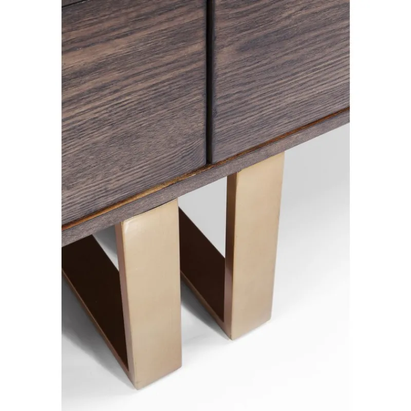 Mesa de centro para os amantes dos estilos clássico e asiático que querem algo especial O metal em linhas gráficas e o visual elegante do latão permite que o corpo da madeira flutue adequadamente Uma peça de mobiliário realmente invulgar feita de madeira, que parece muito leve Parceiro ideal para tapetes estampados. Detalhes nos puxadores tornam esta mesa de centro tão valiosa.