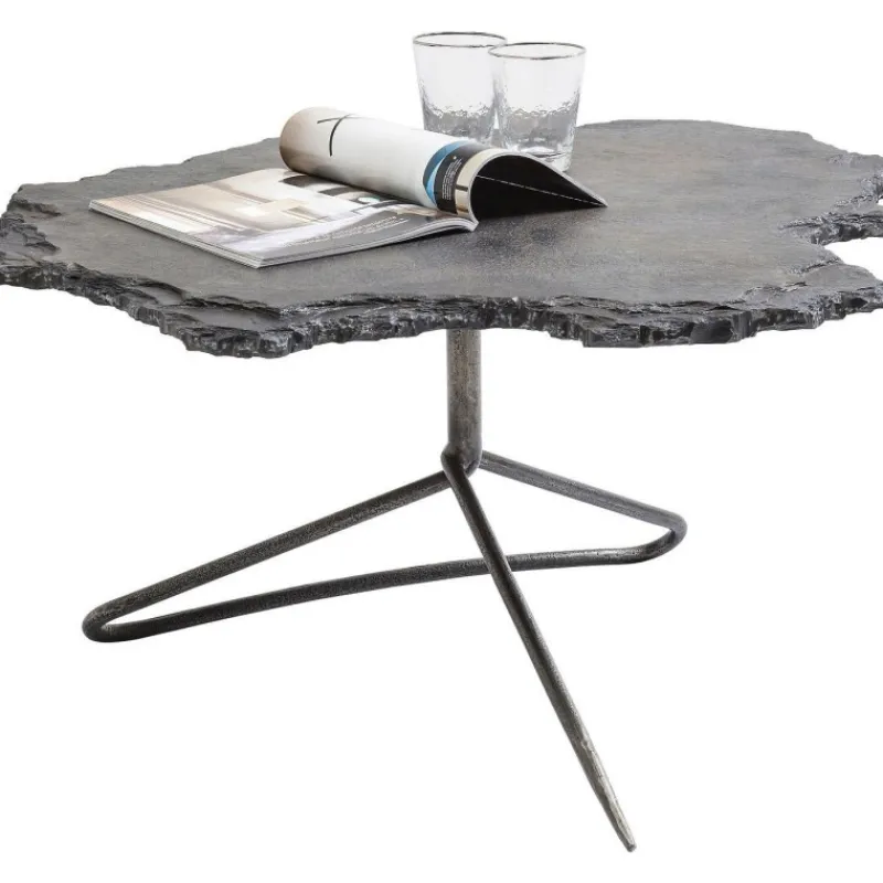 Natural e autêntica. Esta marcante mesa de centro causa impacto com as suas formas simples e detalhes originais. O tampo em pedra calcária preta é particularmente atraente. Outras versões disponíveis.