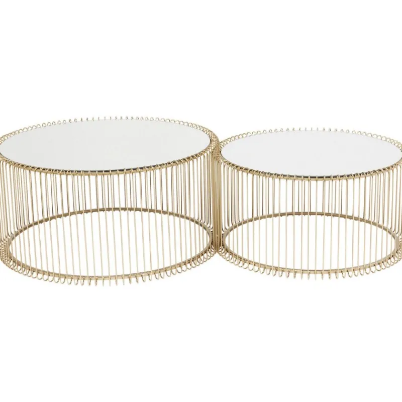 As mesas de centro são como malas- são a marca do seu visual. Neste caso especial existem duas marcas, porque o modelo em latão vem num par. Não só a forma circular desta mesa é impressionante, como também a sua estrutura em alto brilho e o tampo espelhado. Muitos modelos semelhantes estão disponíveis.
