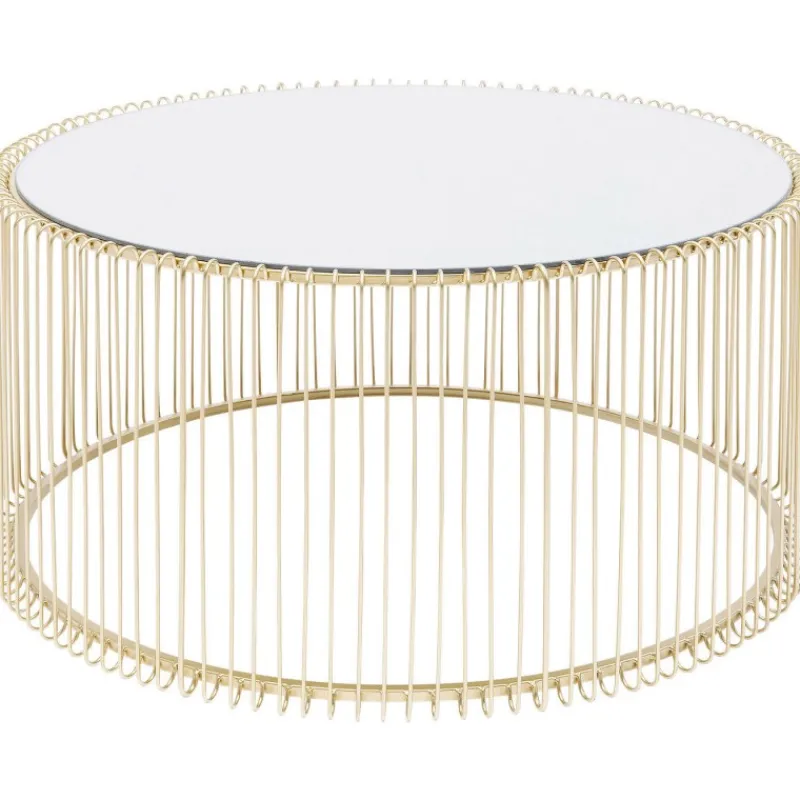 Uma mesa de centro redonda e moderna em latão com um tampo espelhado – um parceiro sofisticado para couro, veludo e sofás em tecido Um ponto de destaque glamoroso para qualquer lounge ou fazendo companhia a um sofá na sala A composição em arame da mesa de centro mantém o chão visível – isto faz com que pareça leve e espaçoso O aspecto aerodinâmico e intemporal faz desta mesa redonda uma popular candidata à mistura de todos os estilos de mobiliário Mesa de Centros da colecção Wire estão disponíveis em muitas variações, tamanhos e cores.