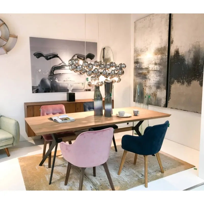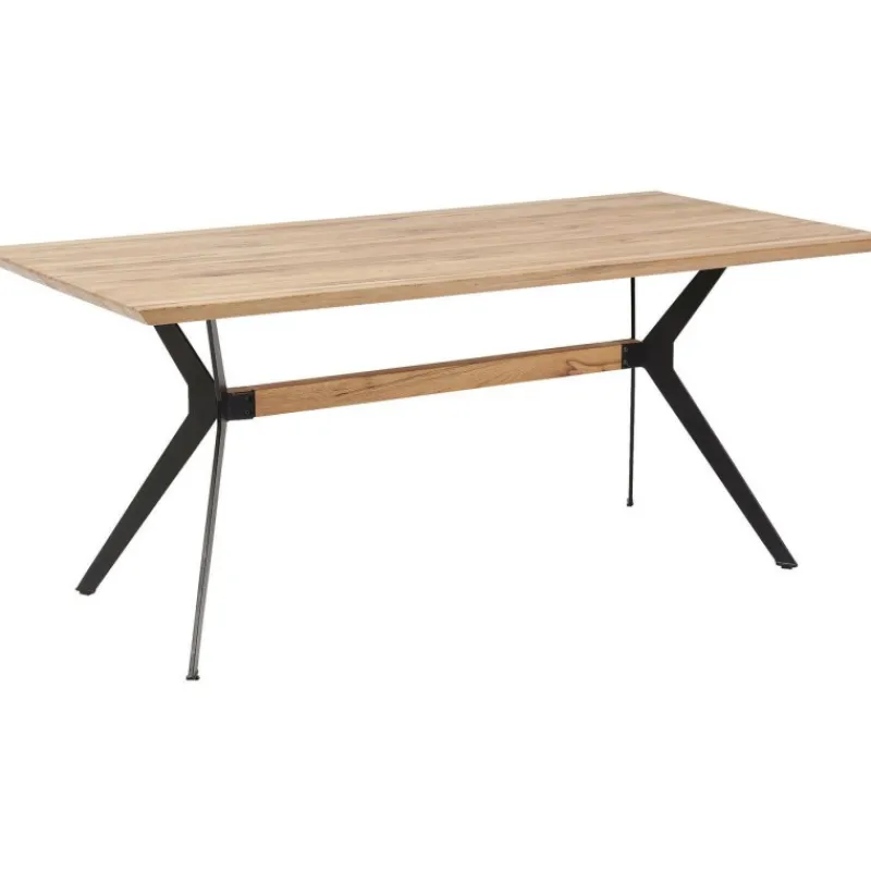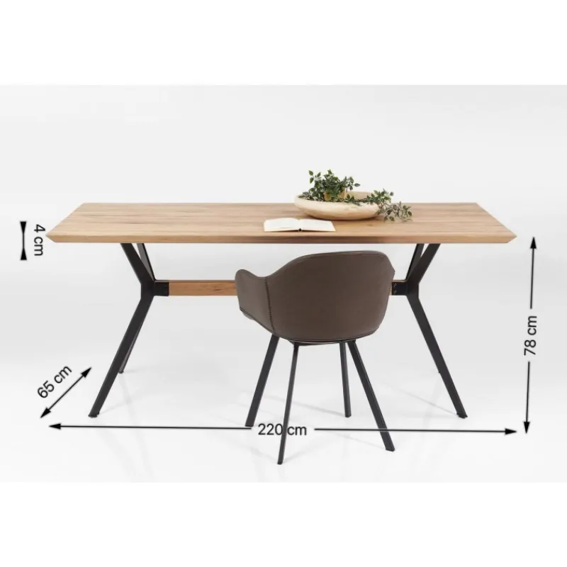 A mesa Downtown não é uma mesa clássica – felizmente! O seu formato dinâmico de aço e tampo de carvalho não só é particularmente atraente, como também garante mais espaço para as pernas. O tampo sólido feito de carvalho envernizado adapta-se habilmente com arestas biseladas. Um mesa de jantar de design e certamente também boa para usar como secretária.
