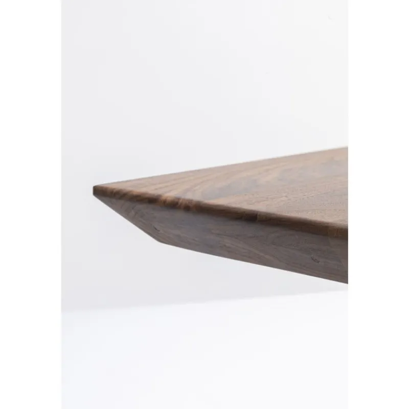 Mesa Downtown com tampo em nogueira e pés em aço, permitindo mais espaço para mais pessoas à mesa; Um tampo sólido feito de nogueira envernizado e arestas biseladas. Um mesa de jantar om design e uma opção como secretária no seu escritorio.