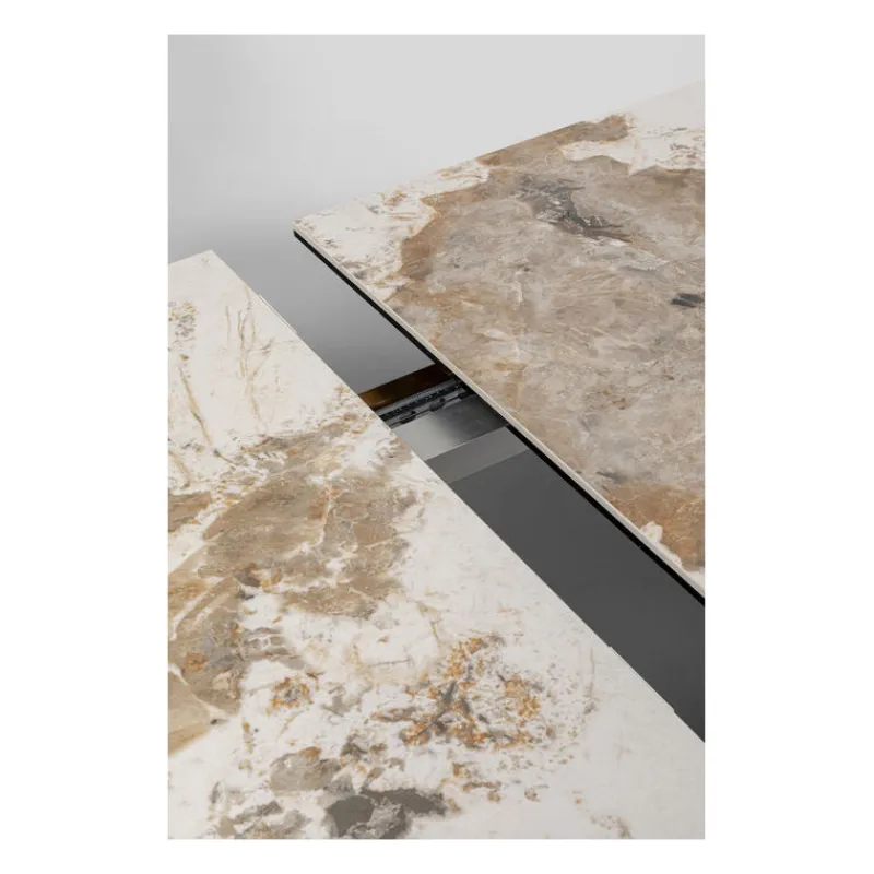 O tampo central tem 200 cm de comprimento, ao qual pode adicionar a folha de extensão central de 60 cm para um comprimento total de 260 cm. Para 6 a 10 pessoas.