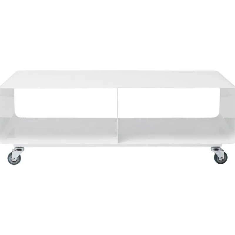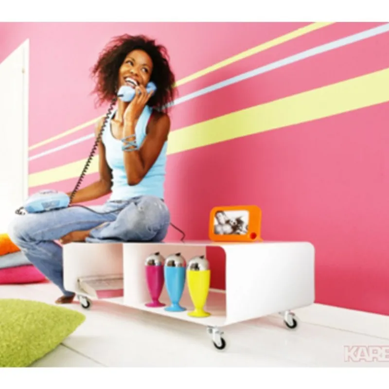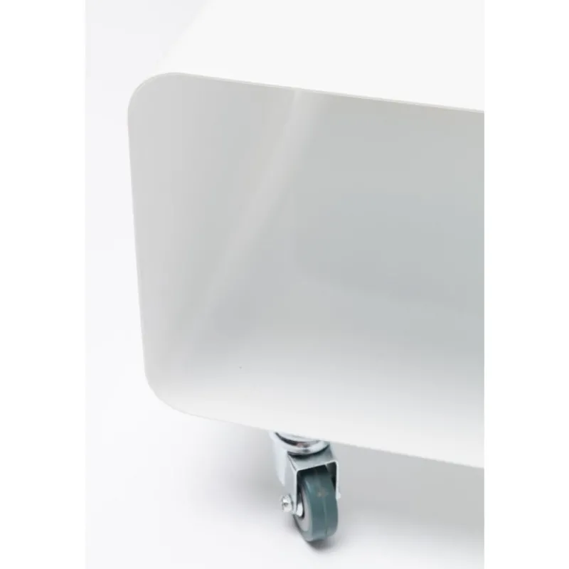 Referência aos anos 70 em branco – Mesmo que as televisões de hoje sejam muito diferentes dos modelos dos anos 70, elas ainda são uma boa combinação para o Lounge TV Mobil com sua referência à década. O estilo dessa peça clássica de mobiliário é intemporal e irá harmonizar-se com quase todos os conceitos de mobiliário. Em branco sem adornos e com uma forma angular arredondada faz o seu trabalho de uma forma discreta, movimentando televisores que chegam a pesar 40 kg em torno da sala nos seus quatro rodízios. Uma peça funcional de mobiliário com um design elegante e subtil.