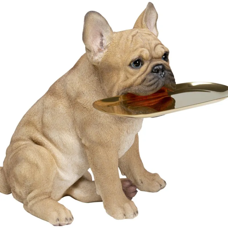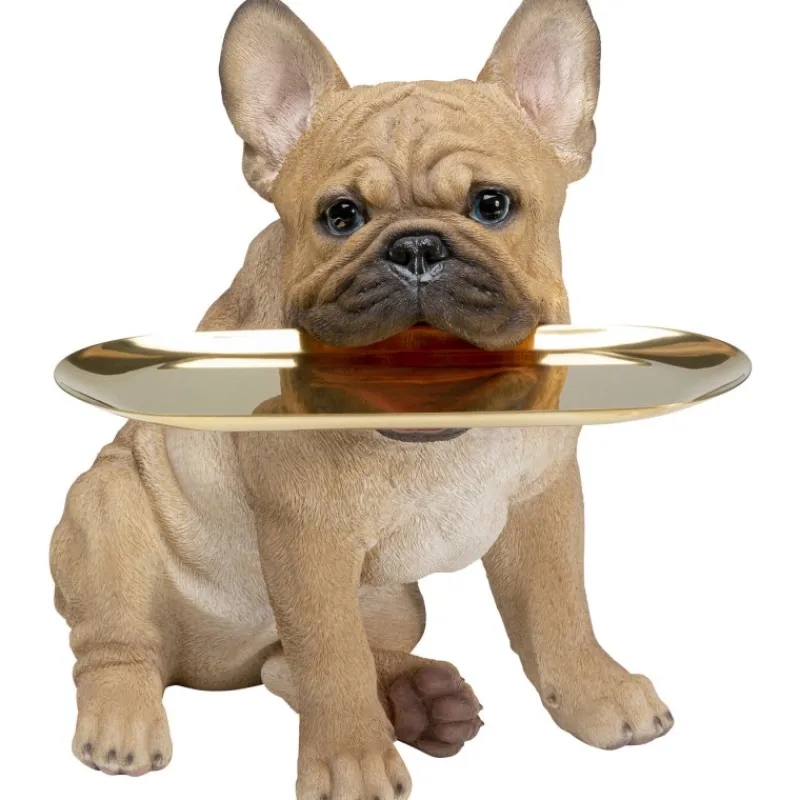 Este adorável bulldog está ao seu serviço com a bandeja que segura na boca. Terá o prazer de guardar as suas chaves, velas ou plantas. Bandeja removível.