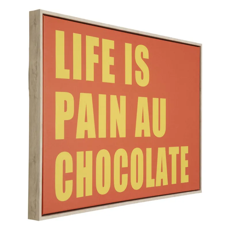 Dê um toque de bom humor à sua casa com este quadro. Num fundo laranja vivo, as palavras “Life is pain au chocolate” em maiúsculas amarelas combinam humor e indulgência.