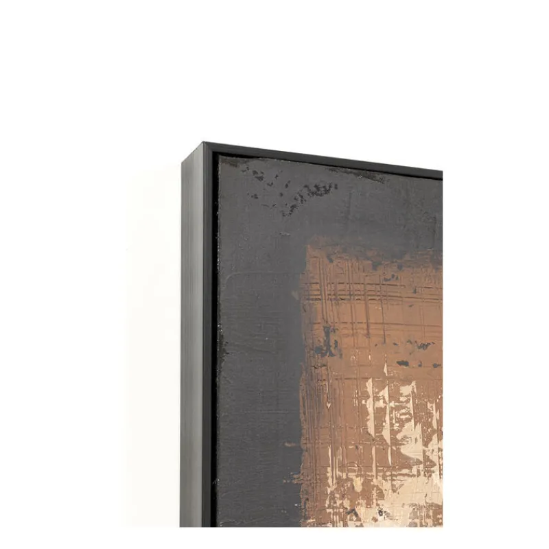 Emoldurado por contornos pretos, este quadro apresenta uma paisagem abstrata em tons de castanho. Os tons quentes e terrosos combinam-se para criar uma cena que evoca horizontes distantes e suaves.