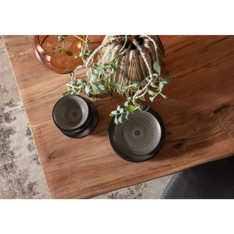 O preto misterioso e um padrão étnico ligeiramente elevado e regular, conferem à louça de mesa Gwayi o seu design requintado.Uma colecção moderna de pratos que também é prática: é adequada para o micro-ondas e para a máquina de lavar louça.