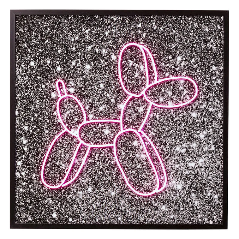 Esta pintura oferece um contraste impressionante entre um fundo preto salpicado de branco, evocando a noite estrelada, e…