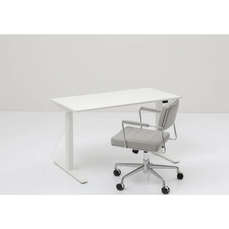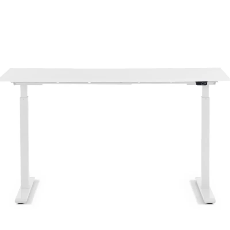 Uma secretária rectangular, regulável electricamente em altura, com um resistente tampo MFC branco e uma estrutura em aço lacado branco. Multifacetada para o escritório e o estudo em casa: a mesa ajustável electricamente garante mais variações, postura ergonómica e movimento no trabalho quotidiano. Tecnologia premium de 2 motores com função de memória, função de paragem suave e ajustável para um posicionamento estável. A secretária pode ser ajustada de forma contínua e silenciosa, de 70 a 120 cm. A protecção contra quebra garante uma grande segurança. Montagem simples em 6 passos, adequada para uso em escritório graças às normas da FCC. Diferentes versões disponíveis.
