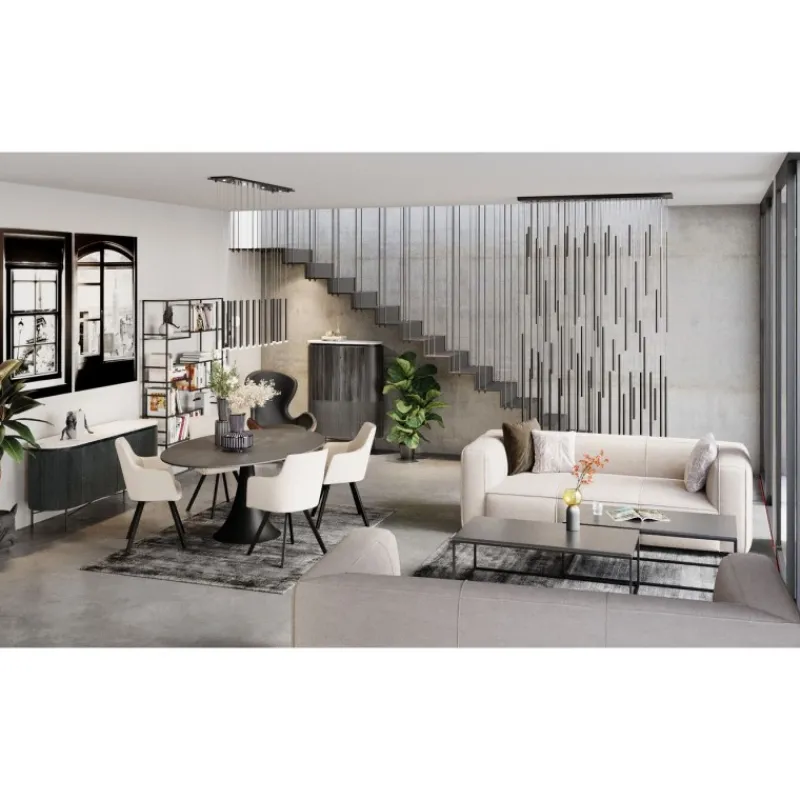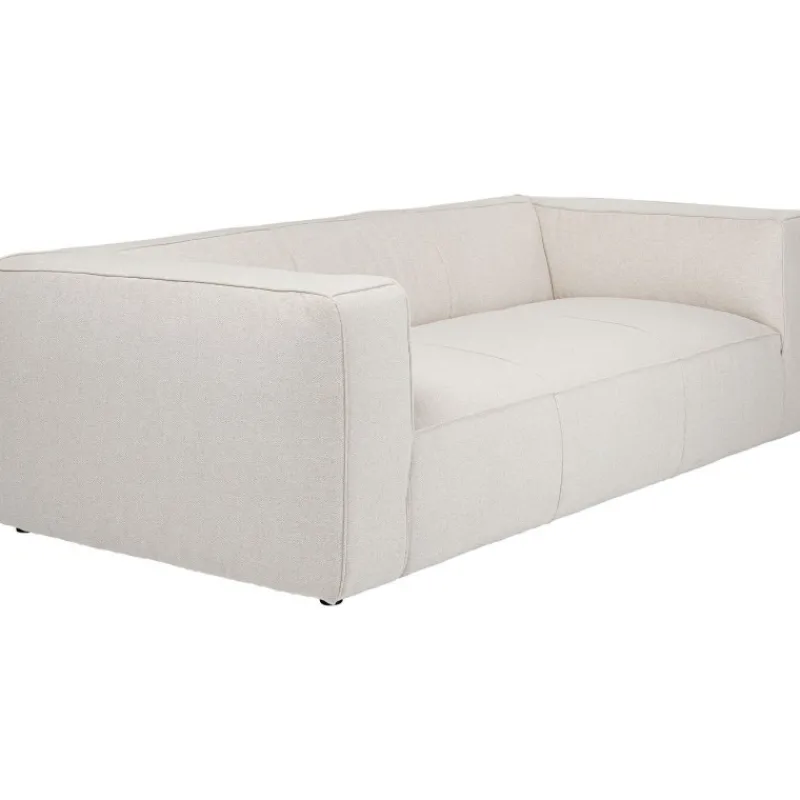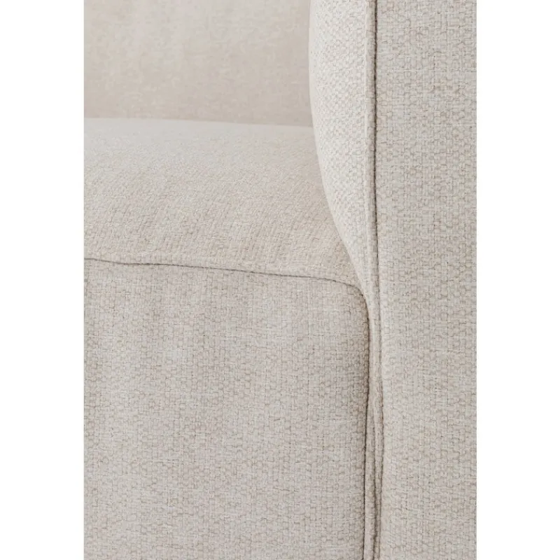 Este sofá revisita o estilo vintage e dá-lhe um toque moderno com um tecido têxtil. O encosto e os apoios de braços espessos conferem-lhe uma silhueta acolhedora e confortável.