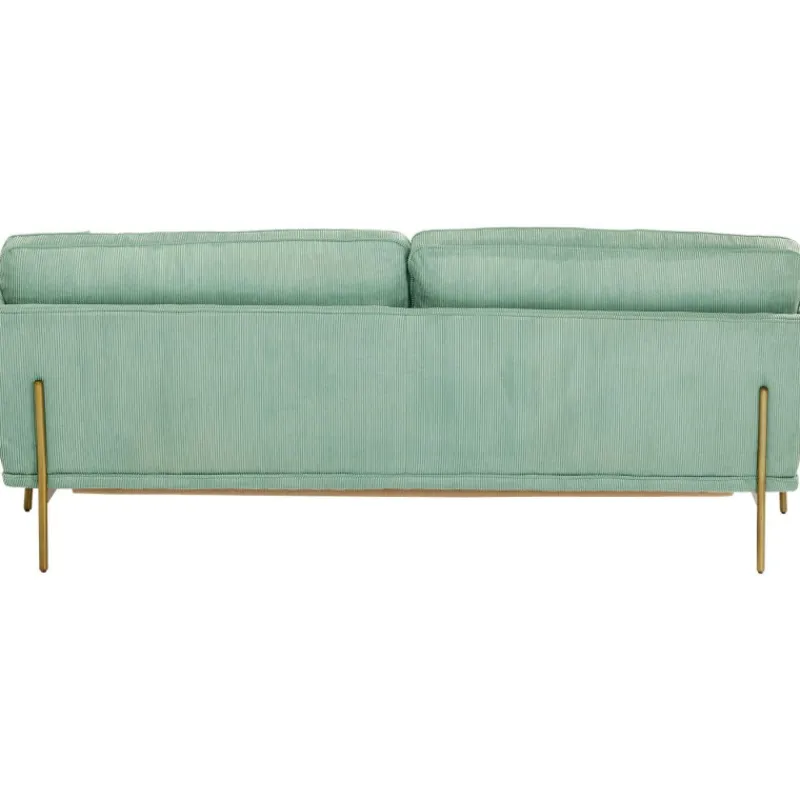 Este sofá de 3 lugares criará um ambiente retro em sua casa com o seu tecido de veludo cotelê combinado com pés dourados. A cor verde menta traz suavidade e frescura ao seu ambiente. As almofadas e assento acolchoados oferecem um verdadeiro conforto para desfrutar de um momento relaxante.