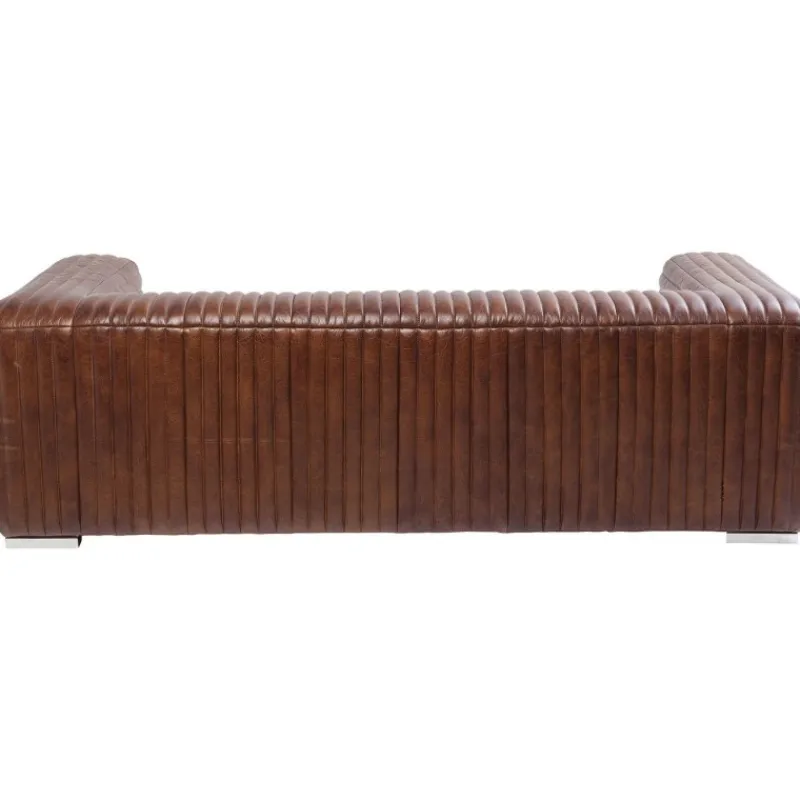 Sofá em pele castanha de alta qualidade com acolchoado requintado, elegante e simples ao mesmo tempo. Um generoso sofá de três lugares em forma cúbica, no qual todos querem sentar-se imediatamente. O verdadeiro destaque é o revestimento em pele num tom castanho conhaque, sensual e de aspecto quente e, ao mesmo tempo, incrivelmente resistente. Um clássico com uma visão que se adapta a muitos estilos. Para quartos em tons naturais, bem como em combinação com cores fortes.