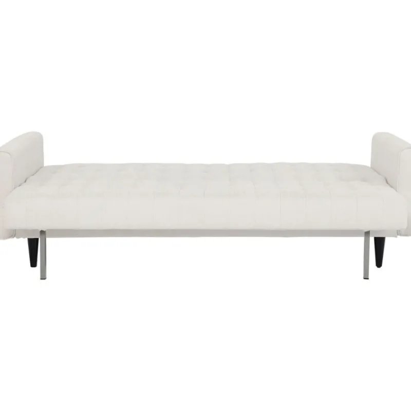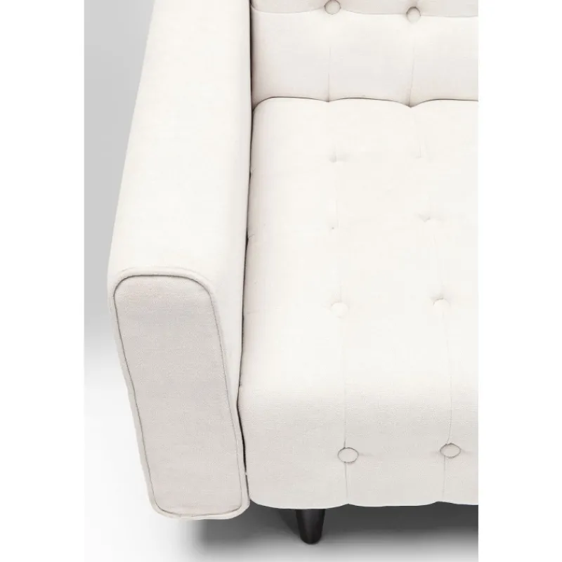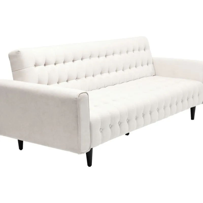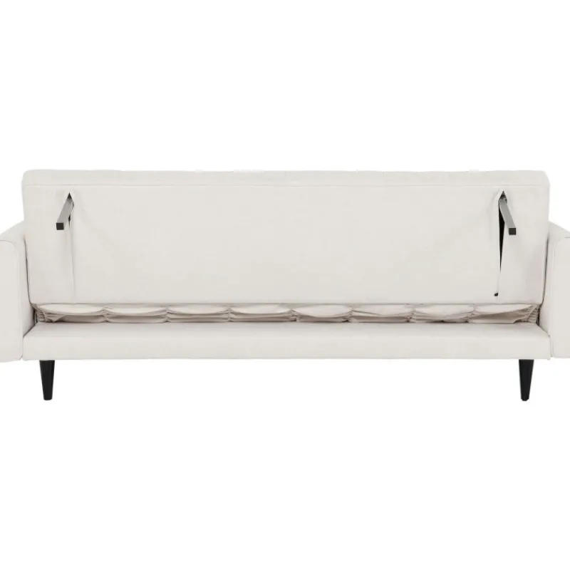 Apartamento pequeno? Não há problema. Durante o dia pode relaxar confortavelmente no sofá-cama. À noite, Milchbar Beige transforma-se simplesmente numa cama agradável com colchão de molas ensacadas. O encosto pode ser facilmente dobrado num abrir e fechar de olhos, os apoios de braços podem ser facilmente removidos. Adequado também para os hóspedes durante a noite: O sofá-cama não é apenas prático, mas com o seu charme casual retro, capitoné marcante e pernas finas e lacadas a preto, é também um verdadeiro destaque visual.