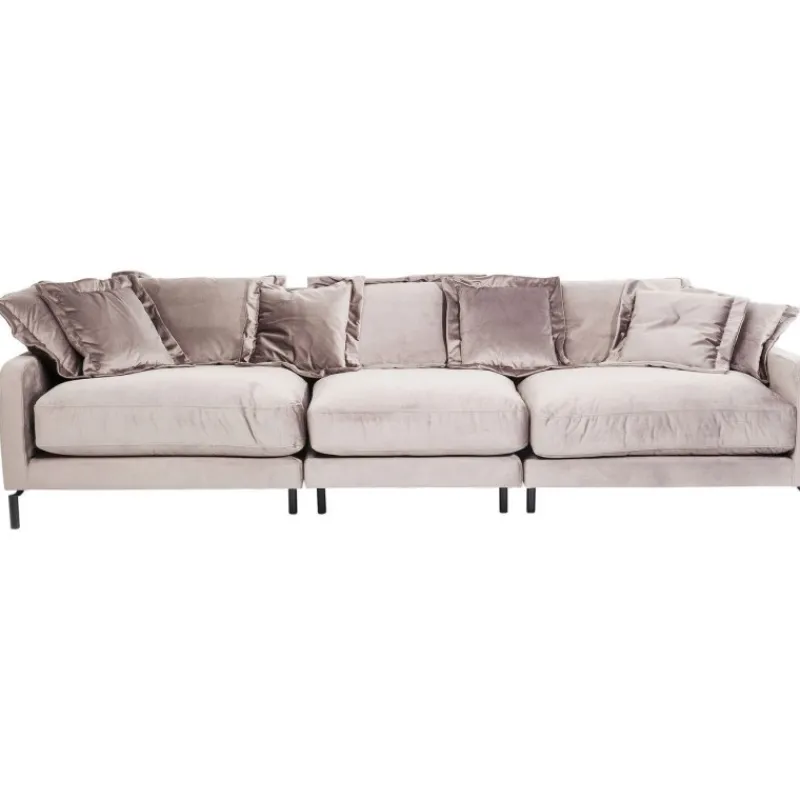 Sentado confortavelmente no sofá com muitas almofadas acolhedoras e muito casuais num ambiente elegante? Com certeza! A forma clássica do sofá e o revestimento aveludado e cintilante dos estofos dão à colecção de sofás Lullaby uma actualização elegante e glamorosa. A Lullaby é uma colecção de sofás de alta qualidade, composta por sofás de dois ou três lugares combinando cadeirões, e repousa pés.Disponíveis em azul petróleo ou Taupe. Particularidade: graças aos módulos individuais poderá prolongar o seu sofá.